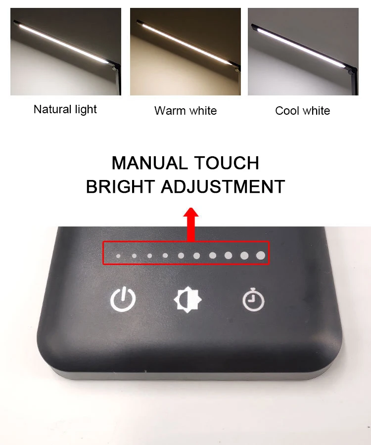 Эта лампа очень чудесная, вы можете выбрать температуру вашего любимого света из 5 цветов (с помощью средней сенсорной кнопки), и вы можете регулировать яркость через линию точек. Его также можно вращать влево/вправо (не точно на 90 ° влево и 90 ° вправо) и вверх/вниз (более 180 °). Я купил версию «только подключи», но usb-порт работает так же (независимо от освещения вкл/выкл).
