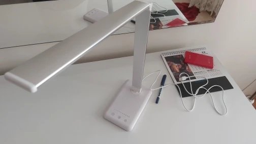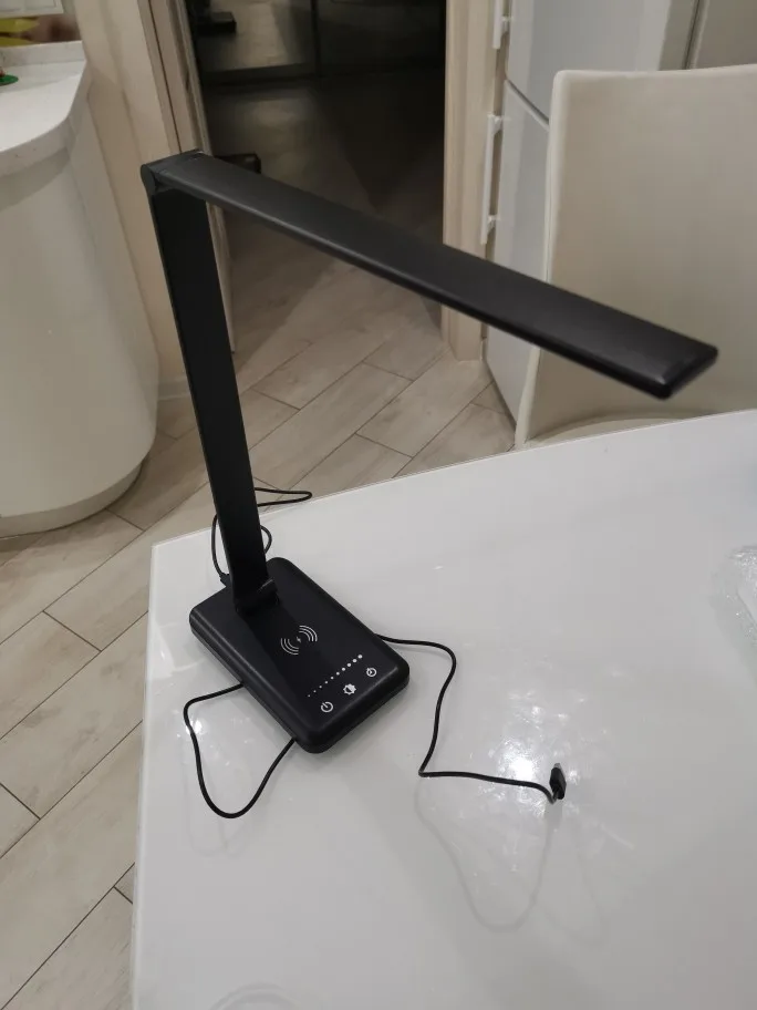 светильник отличный очень понравился!!!светит отлично дети занимаются при нём ! управление светом лёгкое регулировка отличная плюс зарядка для телефона! доставка быстрая в Россию 17 дней! рекомендую магазин продавца! качество отличное фабричное!