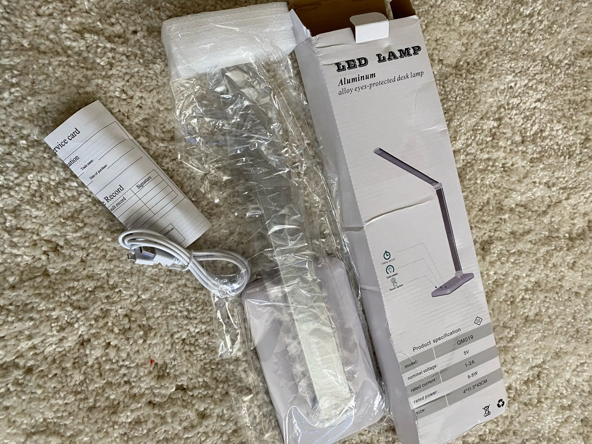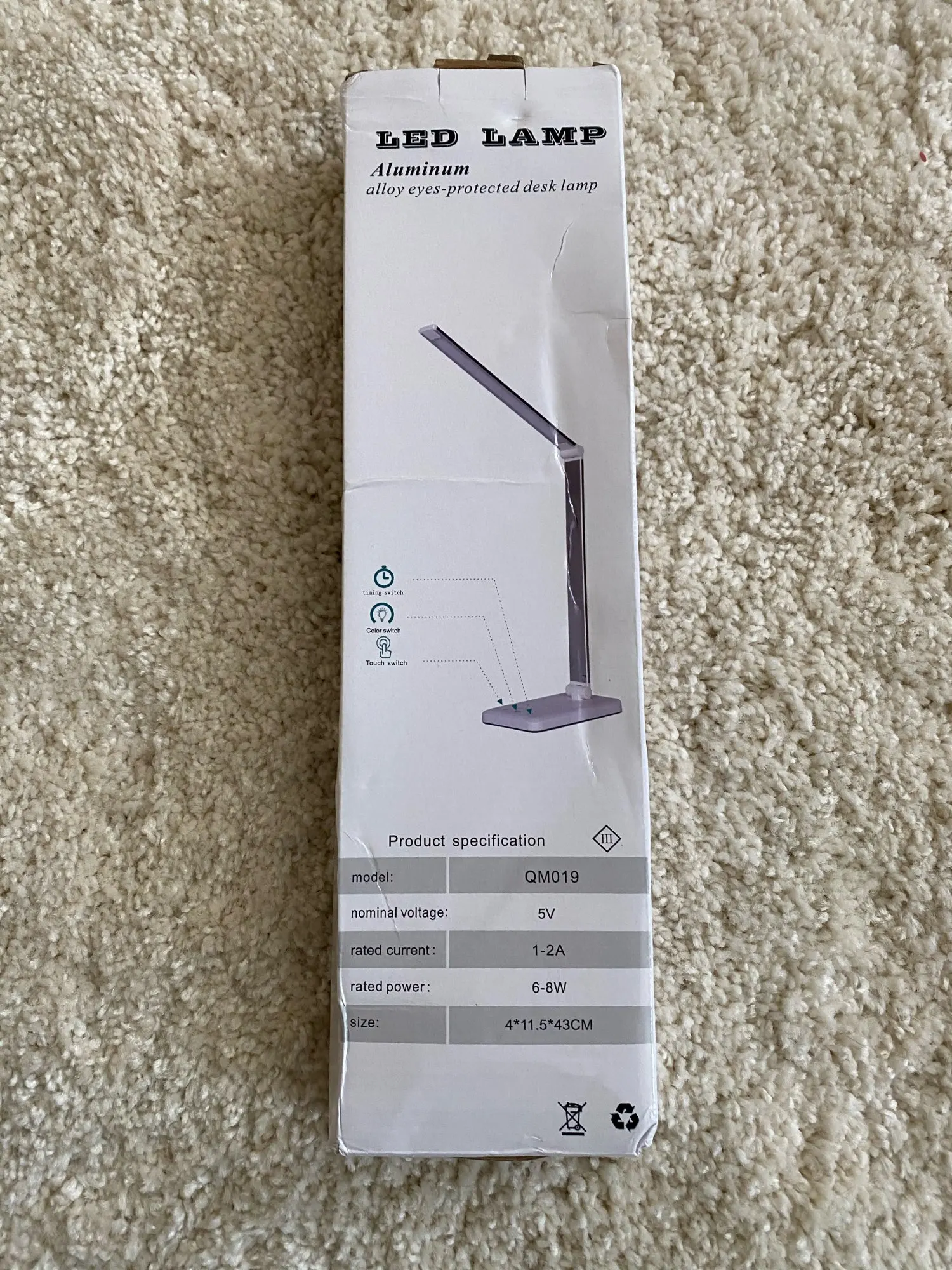 Доставка 16 днів (Міст-Експрес). Відстеження повне. Купляв за $10.26 (з промокодом продавця). Без блока живлення! Підходить зарядник на 1 - 2 Ампери. Лампа має зручний додатковий USB вихід, до якого можна підключити кабель зарядки телефона. Картонна коробка. Добре упаковано. Матеріал лампи - пластик + алюміній. Сила струму - 1A (потужність - 5 Вт). Сенсорне керування, колірні режими, таймер на 30хв та 1годину. Плавне регулювання яскравості. РЕКОМЕНДУЮ!