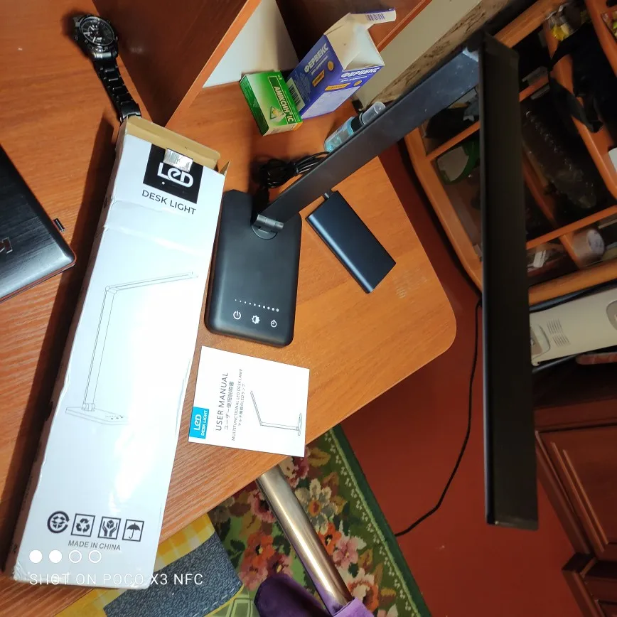 Очень нравится! До Минска шло 1,5 месяца. Коробочка мятая, сама лампа целая. Три тепловых режима. Можно выставить таймер отключения лампы через час и полчаса. Беспроводная зарядка работает прекрасно. Светит даже в сложенном состоянии)