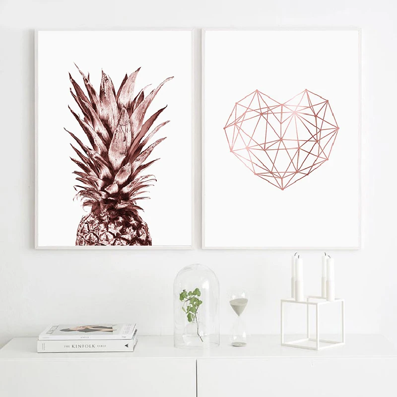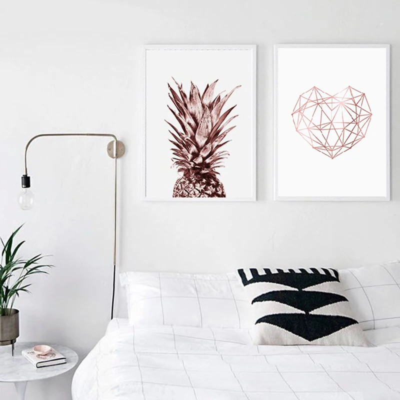 Плакаты и принты тропических ананасов, настенная Картина на холсте с геометрическим рисунком сердца, букв, современное модное украшение для спальни
