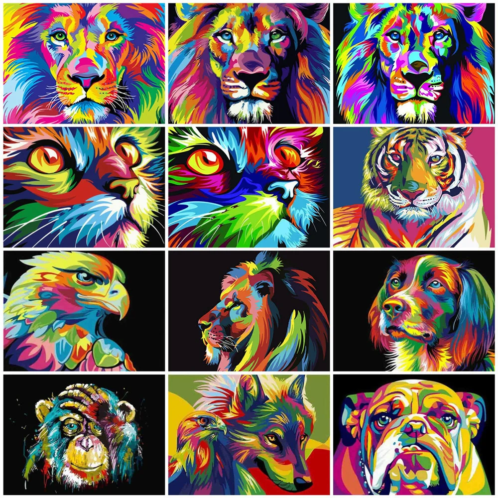 Картина по номерам HUACAN, животное, рисование на холсте, собака, ручная роспись, кошка, сделай сам, Раскраска по номерам, Лев, домашний декор