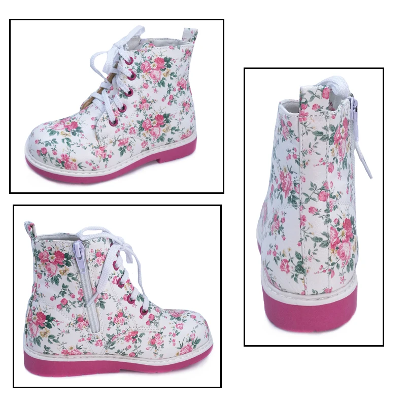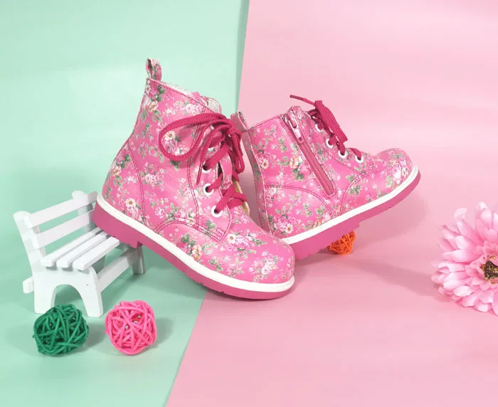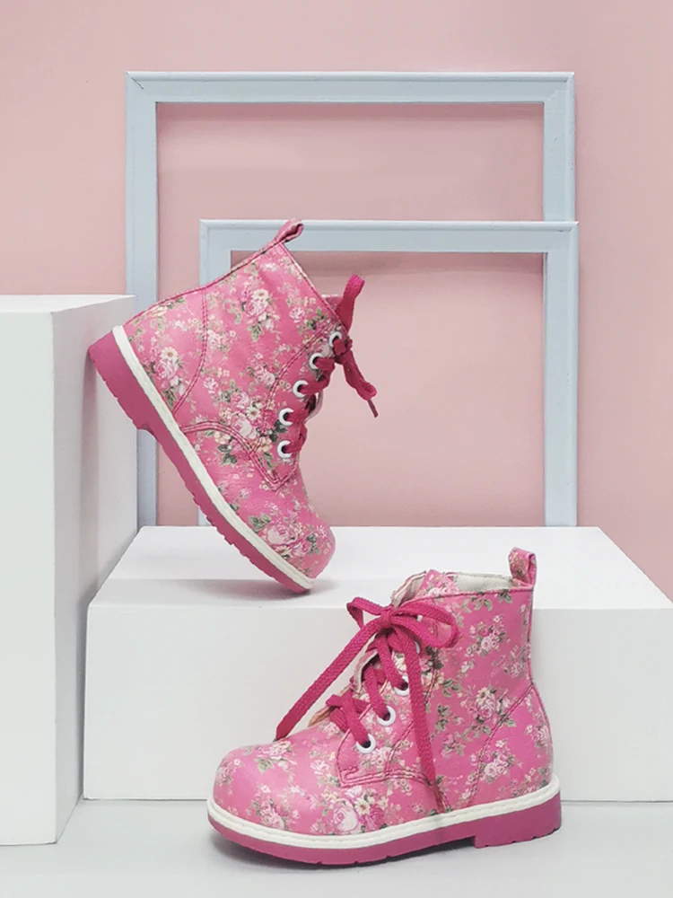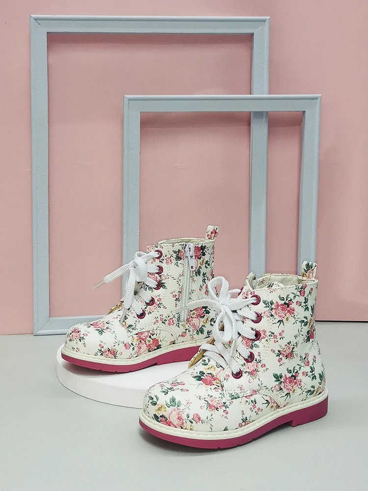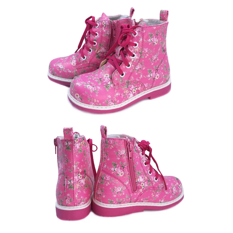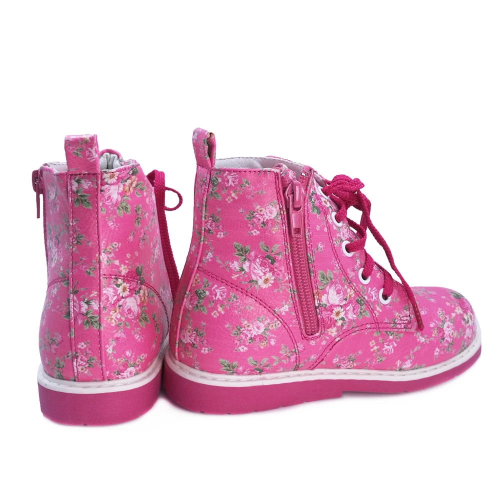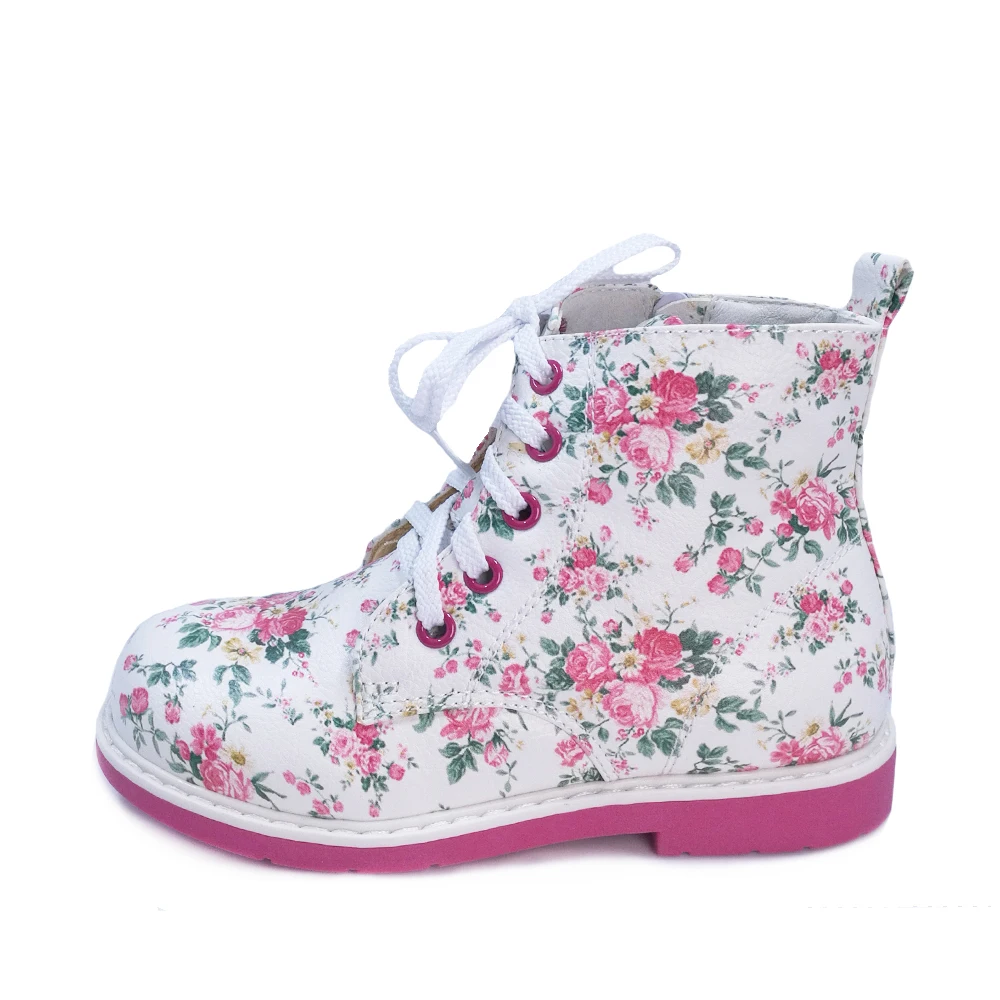 Ботинки ортопедические для девочек, повседневная обувь из искусственной кожи, на шнуровке, с милым цветочным принтом, весна-осень