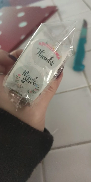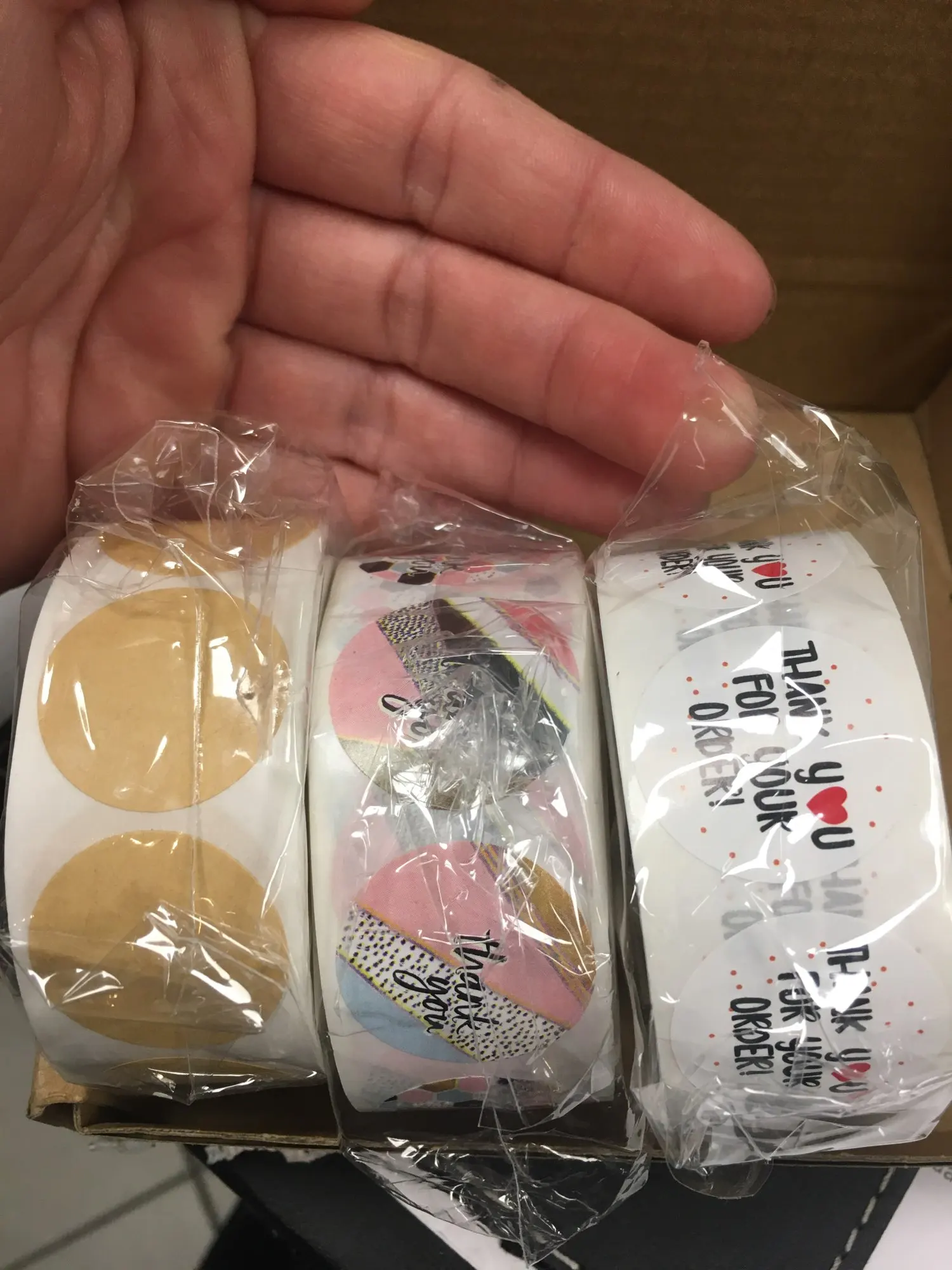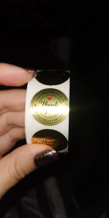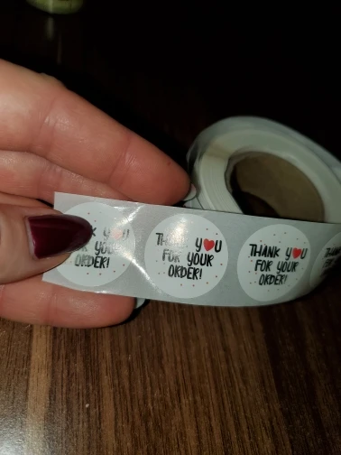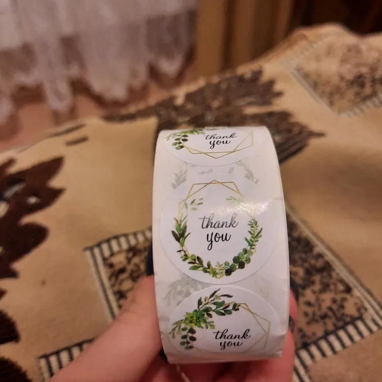 Заказ получен в течение 22 дней в хорошем состоянии. Товар соответствует описанию и изображению продавца в отношении формы, цвета, дизайна и размера (диаметр 2,5 см). Хорошая текстура наклеек на ощупь. Он поставляется в рулоне, что упрощает использование.