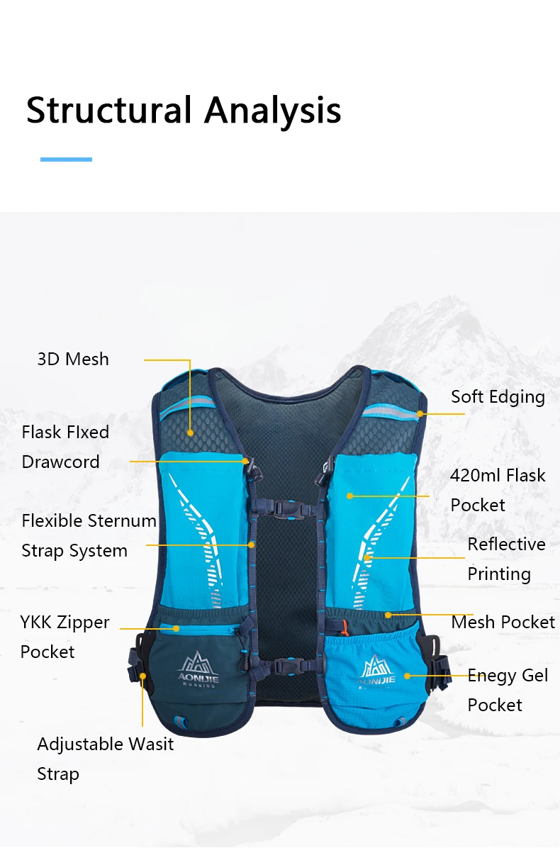 Рюкзак AONIJIE с гидратацией объемом 5 л, ультралегкий комплект из мягкой колбы с жилетом, для занятий на открытом воздухе, походов, бега, марафона