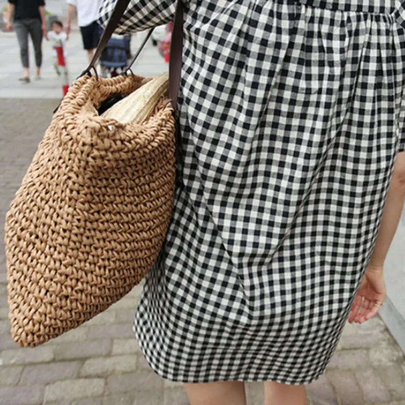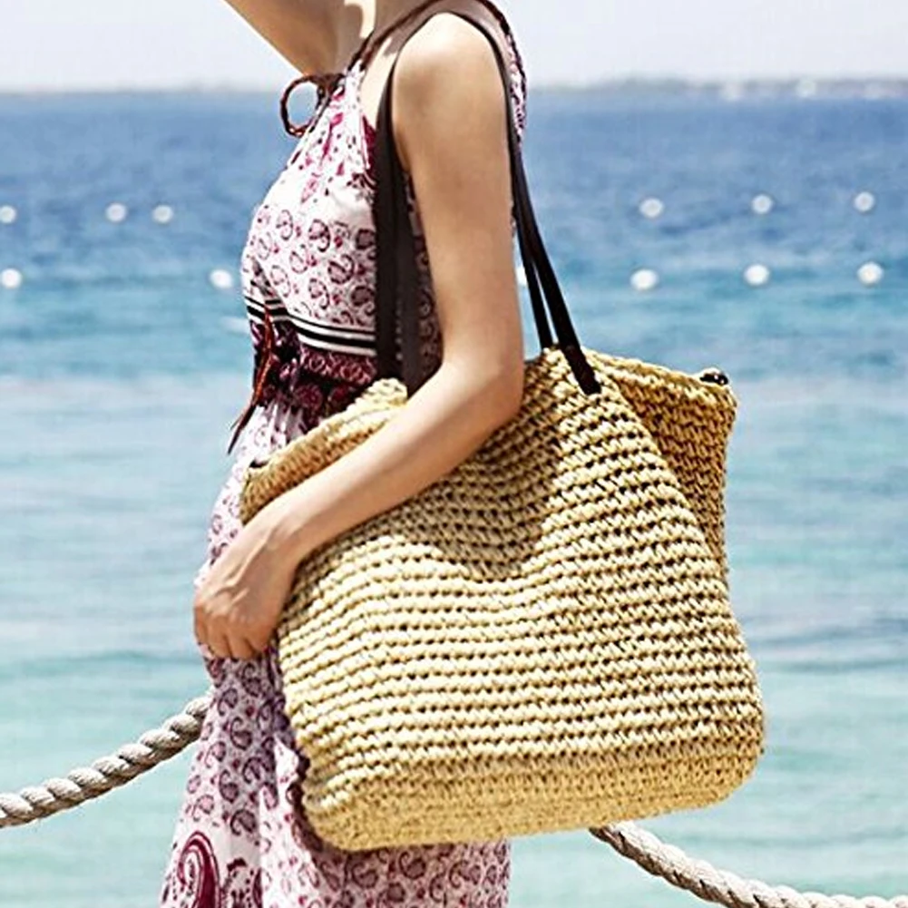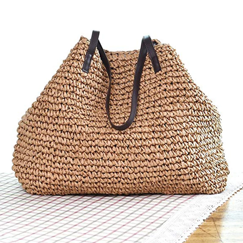 Женская плетеная Сумка-тоут в стиле бохо, Пляжная Повседневная Соломенная плетеная Сумочка на плечо, UK, на лето