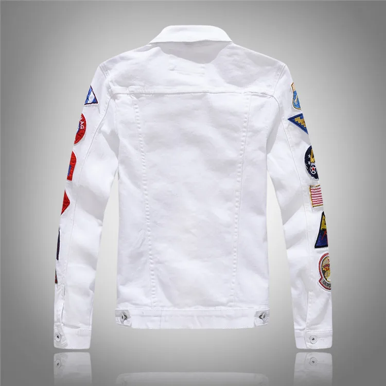 Куртка мужская приталенная из денима, Модная белая Повседневная джинсовая куртка в ковбойском стиле, однотонная, на осень