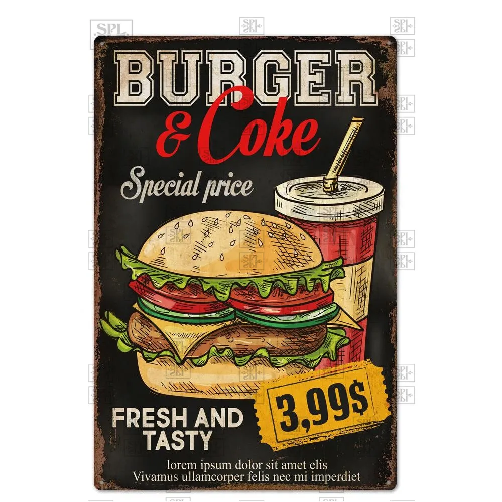 Ресторанная дверная тарелка для фаст-фуда, винтажная металлическая ...