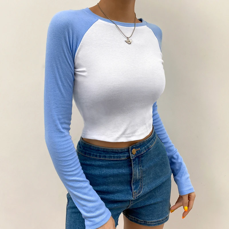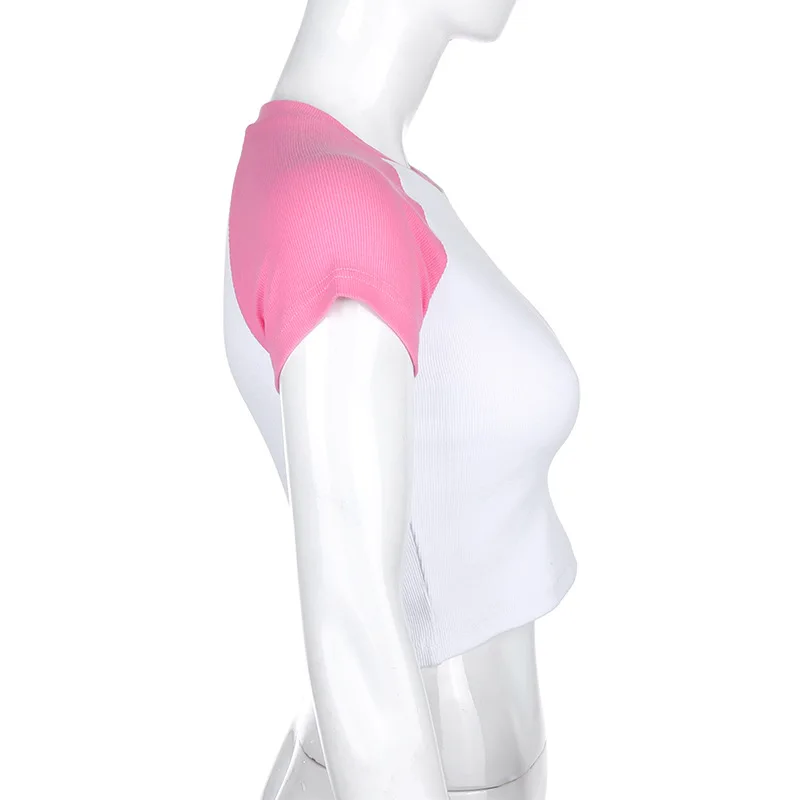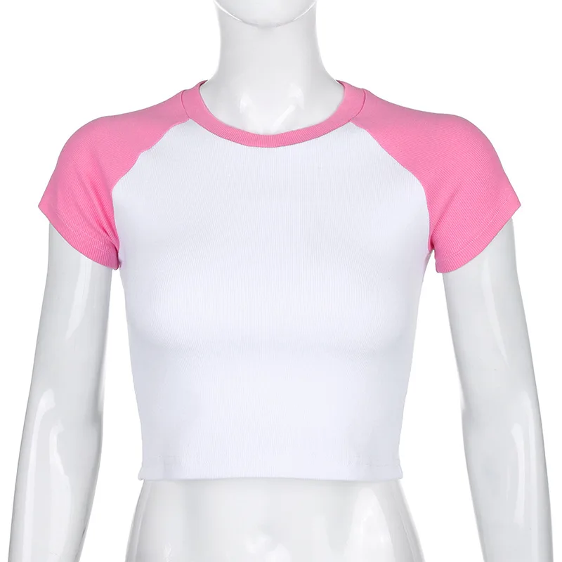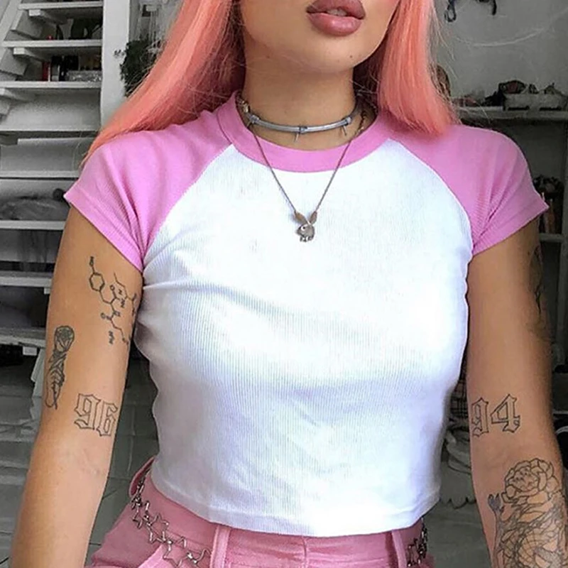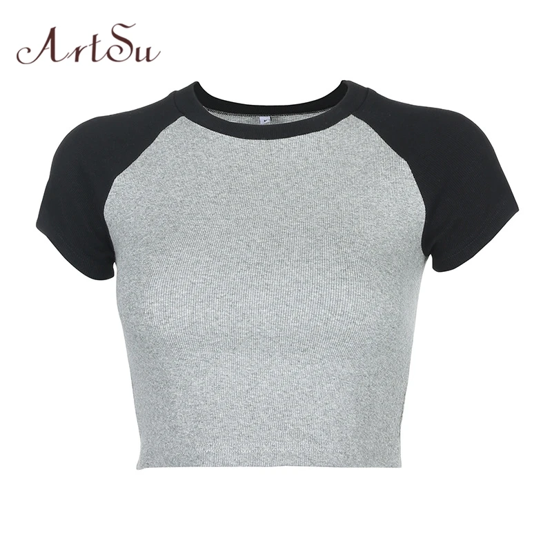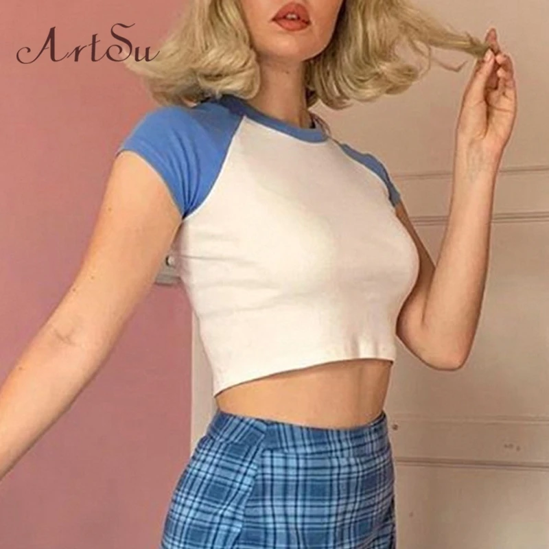 Женская хлопковая Футболка Artsu, летняя укороченная Футболка розового, небесно-голубого цвета, в стиле пэчворк, 2020