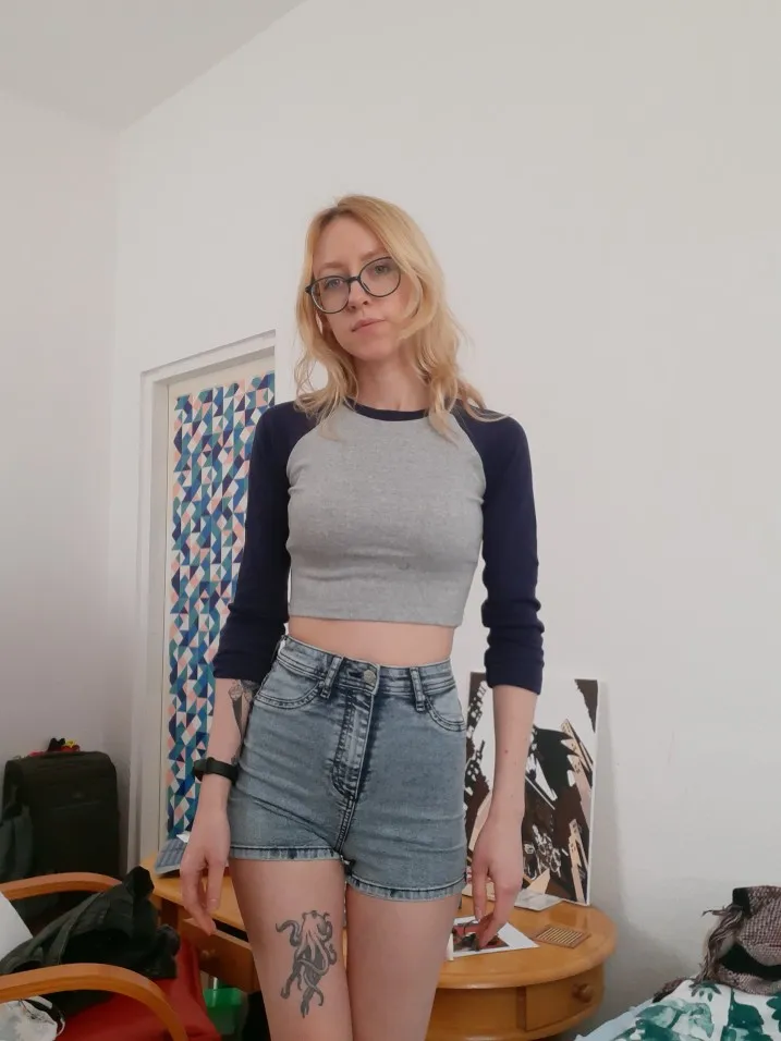 Мне нравится, я заказал рубашку большой, потому что я думал, что тогда она не будет такой кроп-топом, но она все еще была кроп-топом, но она выглядит потрясающе, и я люблю ее