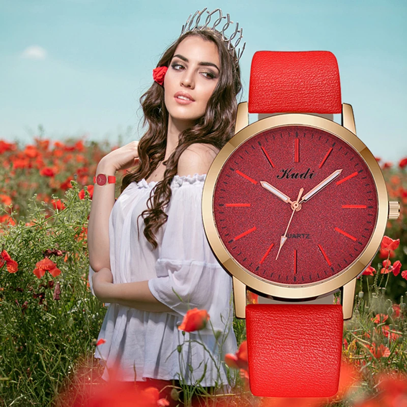 Часы женские кварцевые аналоговые с кожаным ремешком и циферблатом