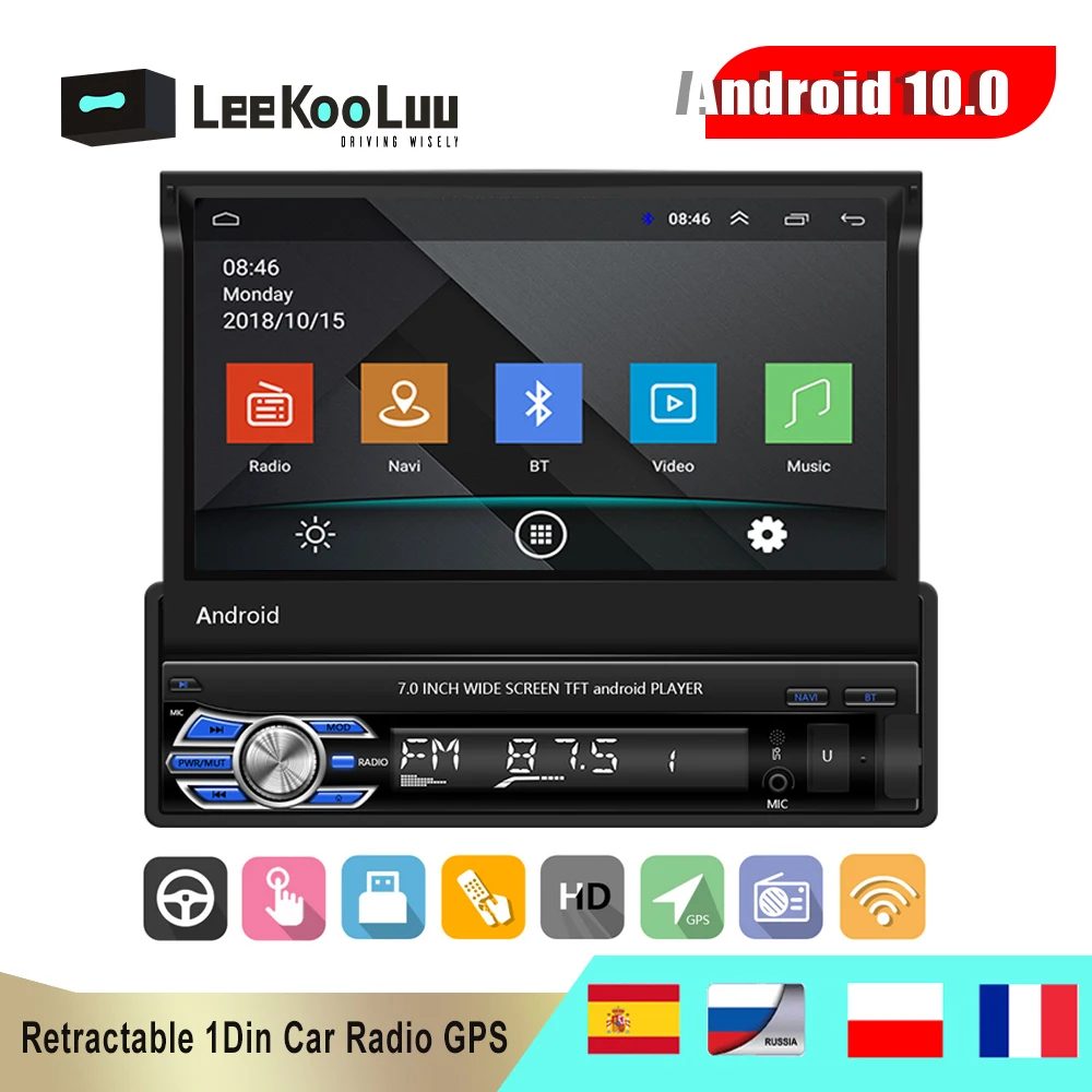 LeeKooLuu 1din автомобильное радио Android 10,1 GPS навигация 7 "HD выдвижной экран MP5 плеер Bluetooth стерео Зеркало Ссылка Авторадио