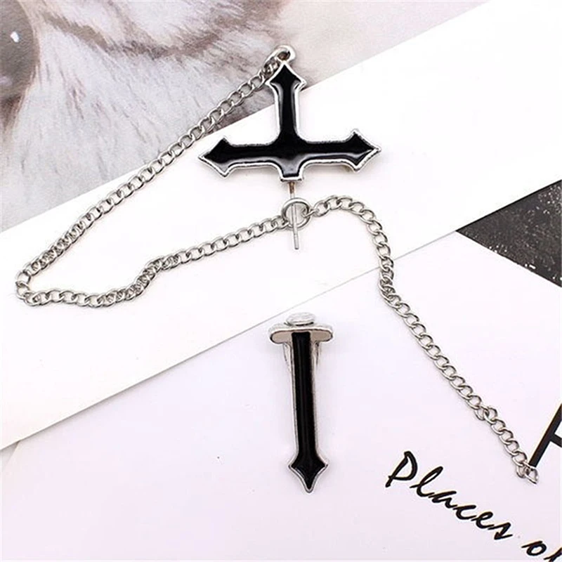 Женские серьги-гвоздики в готическом стиле, черные серьги в форме Креста, винтажное Ювелирное Украшение в стиле панк, длинная цепочка, 2020