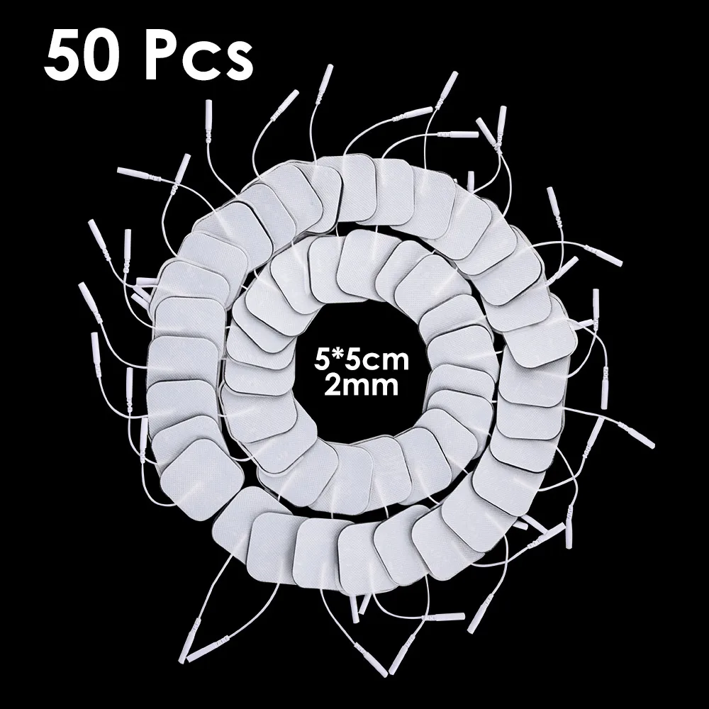 50 шт в наборе, 5*5 см стимулятор нерва электродные подушечки EMS ТЭНов контактной акупунктуры массажер для мышечного стимулятора колодки 2 мм Сделано в Китае