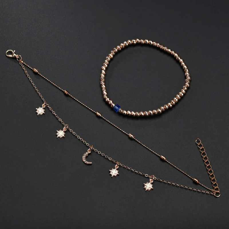 Браслет на ногу Женский, с бусинами, звездой, луной, кисточками, ювелирные украшения для лодыжки, браслет под сандалии