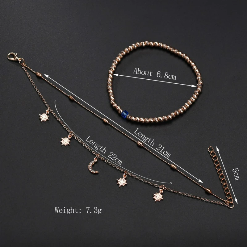 Браслет на ногу женский многослойный в стиле Бохо со звездой и Луной