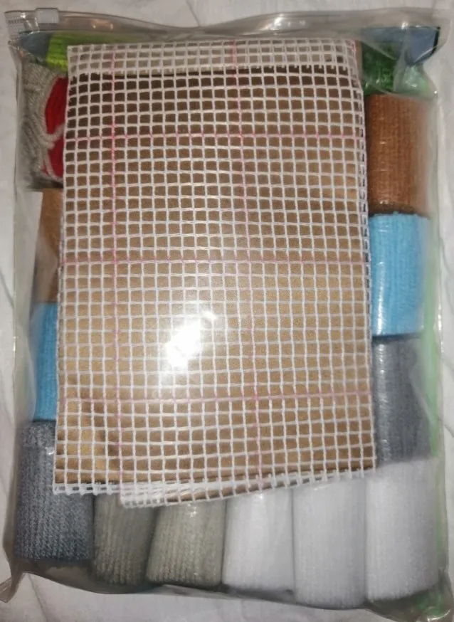 Ordered 24th Nov and arrived on December 30th in Germany. It was packed in a neutral plastic envelope and again in a semi-see through resealable bag. The kit contains everything you need to start. The wool is very fluffy and of constant good quality (have made different experience with a different seller in the past). There are a lot of lovely colors! The chart is clear and collet about it is, that it has another different pattern on the backside of it. I am sure it will come out great. The hook has a slim plastic handle. I am grateful and would buy again. The only downside:the canvas/pillow itself has an almost unbearable smell to it. I hope it will dissolve and will keep you updated if possible.