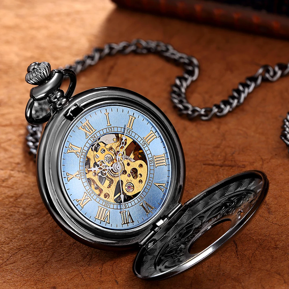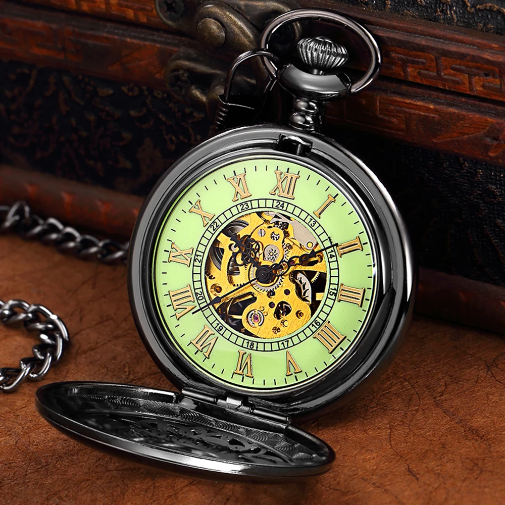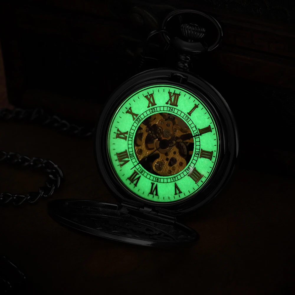 Роскошные светящиеся Механические карманные часы со светодиодной подсветкой, с ручным заводом, римские цифры, цепочка-брелок, подвеска для мужчин и женщин