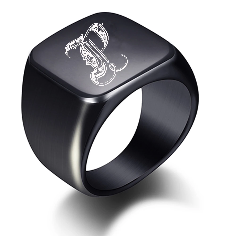 Кольцо мужское из нержавеющей стали с гравировкой букв, 18 мм