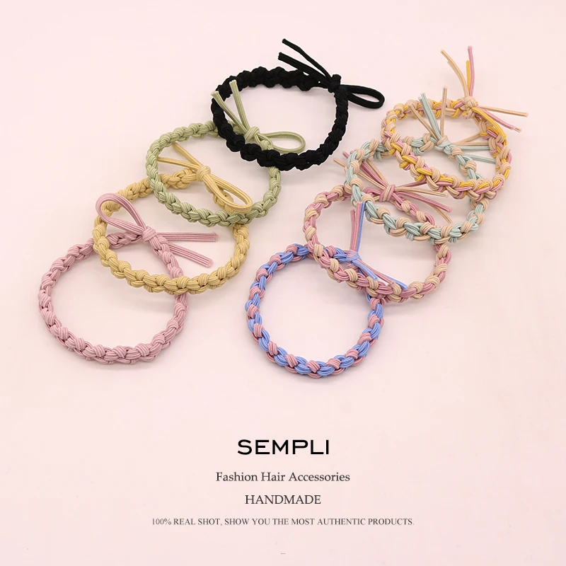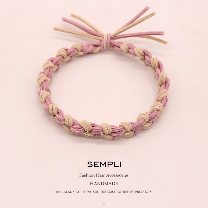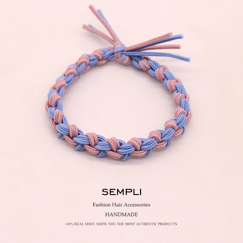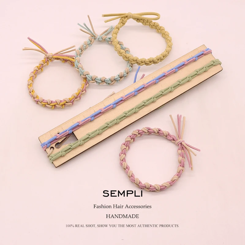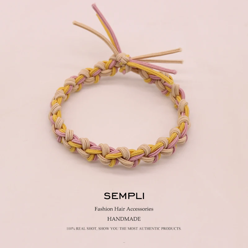 Sempli эластичная лента для волос, повязка на голову, богемная плетеная двухцветная резинка для женщин, эластичная резинка для волос, аксессуары