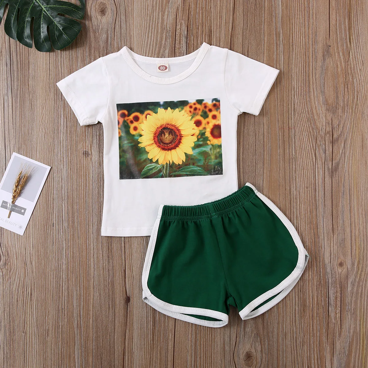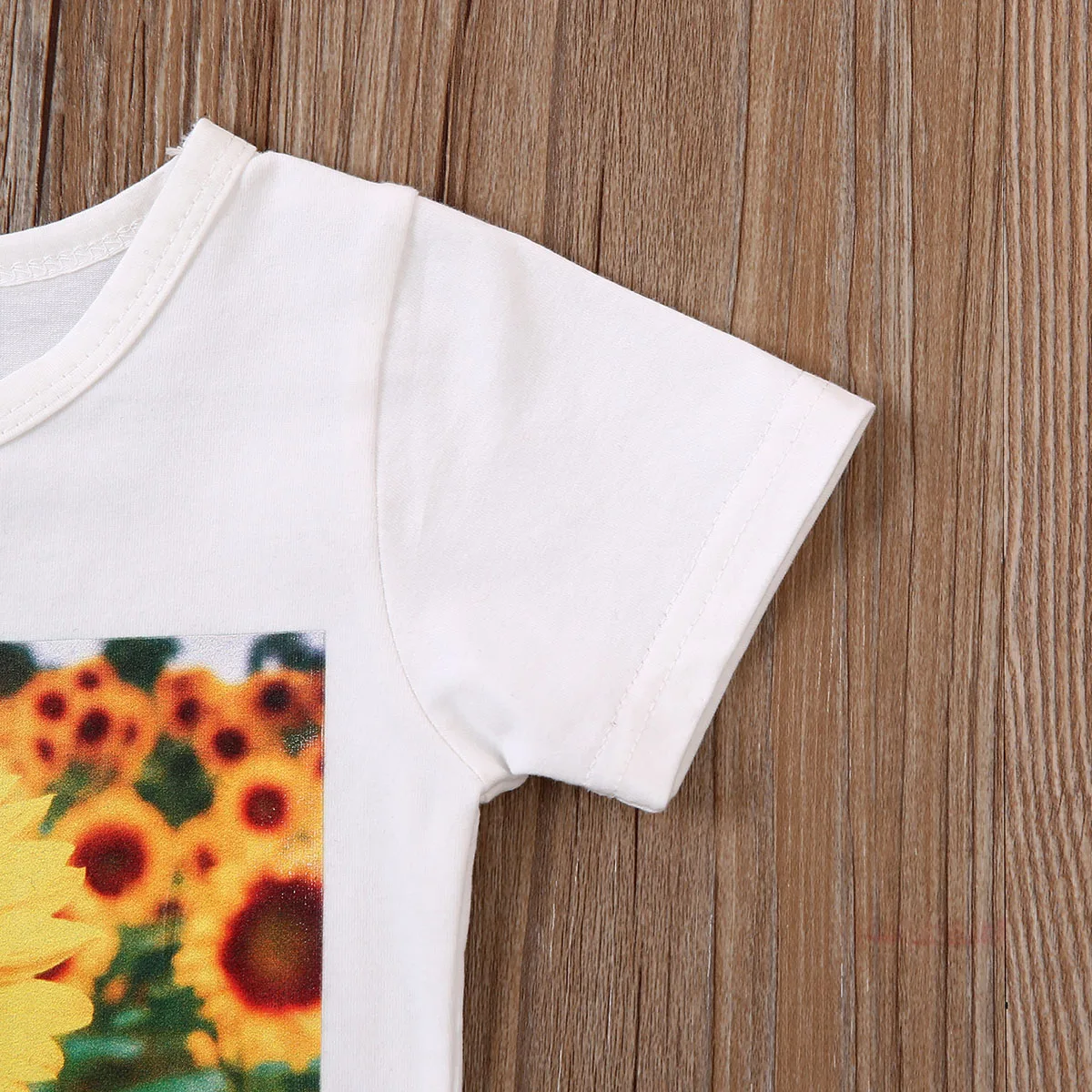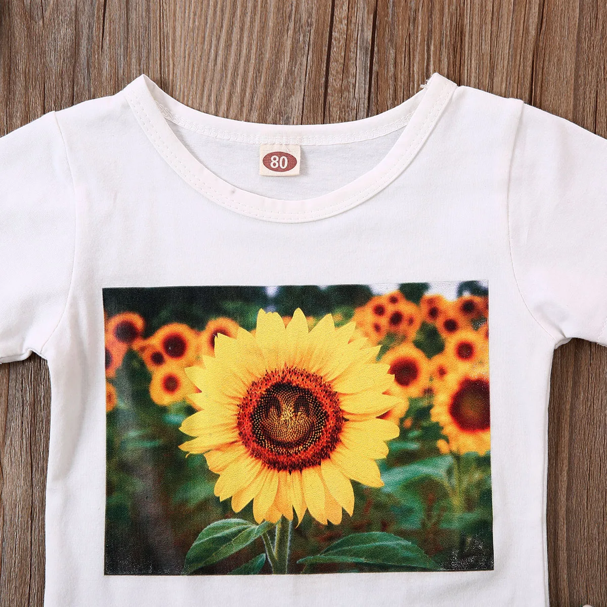 Одежда для новорожденных девочек, От 2 до 7 лет с изображением подсолнуха топы с рюшами, длинные штаны для девочек, повседневная верхняя одежда, летняя одежда