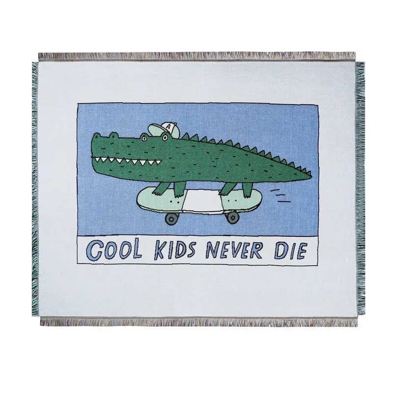 Покрывало из зеленой крокодиловой кожи, нескользящее, с вышитыми буквами, покрывало для дивана, покрывало с кисточкой на кровати, дорожный текстиль для самолета