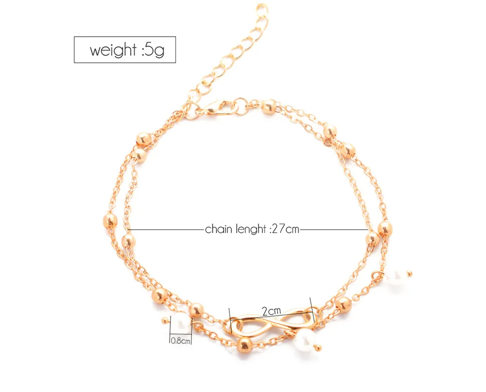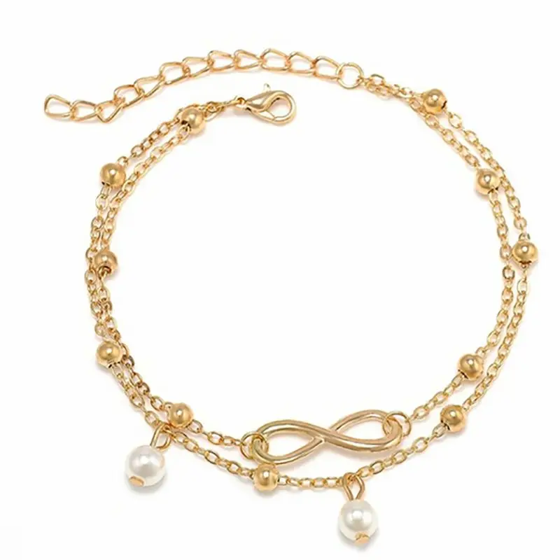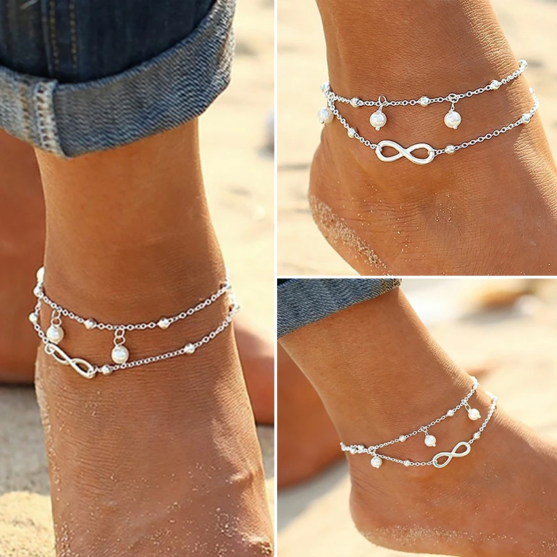 Браслеты на лодыжку в стиле ретро, анклеты с жемчугом, сердце, беск...