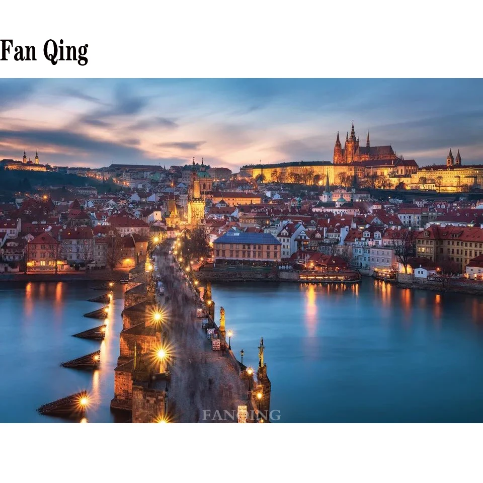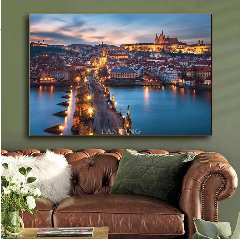 5D алмазная картина сделай сам, алмазная картина в Праге с ночным видением, наборы для вышивки крестом, украшения для гостиной и спальни
