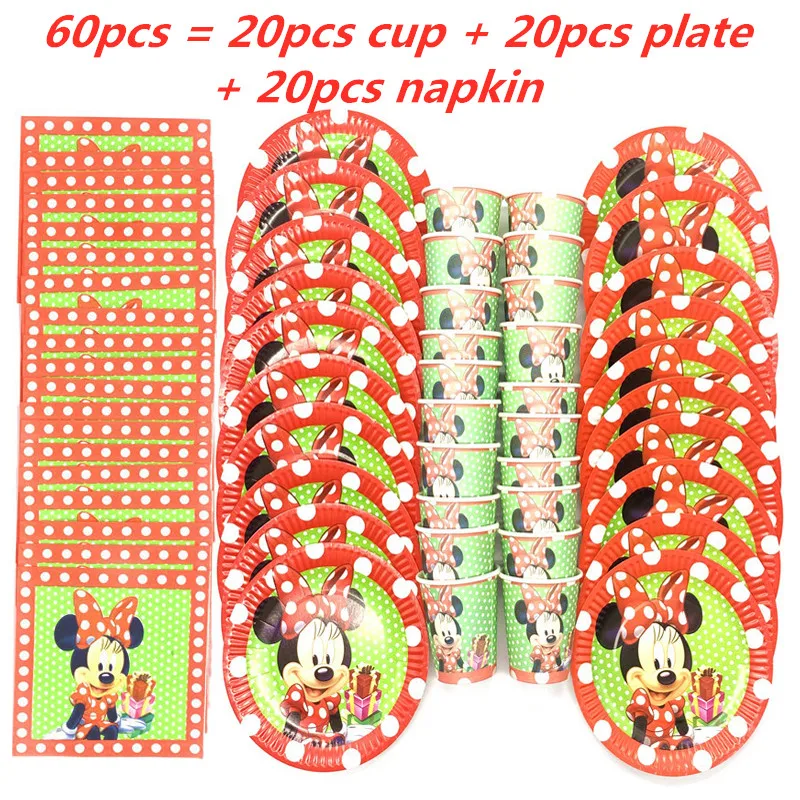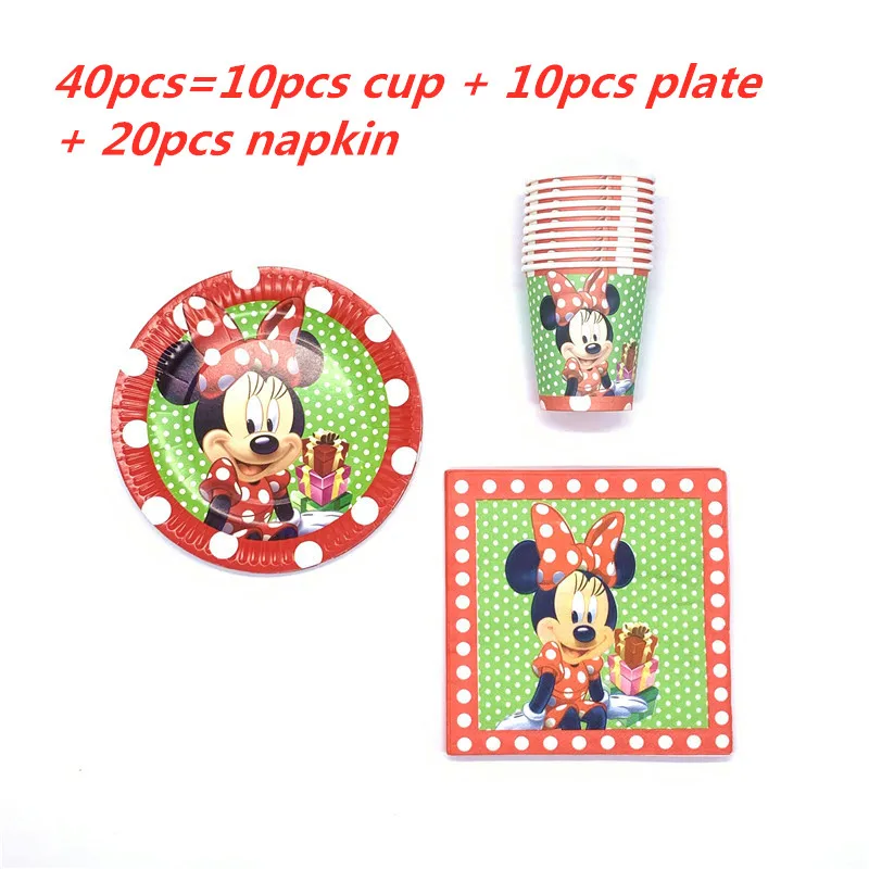 4060 шт.компл. красные тарелки для вечерние с Минни Маусом, чашки, баннеры, одноразовая посуда для девочек, идея на день рождения, украшения вечерние ринки, товары для вечеринок