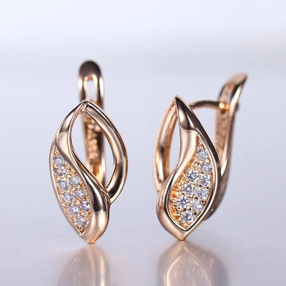 Женские серьги-гвоздики из розового золота 585 пробы, овальные серьги с вырезами в виде листьев, украшения для свадебной вечеринки, HGE283
