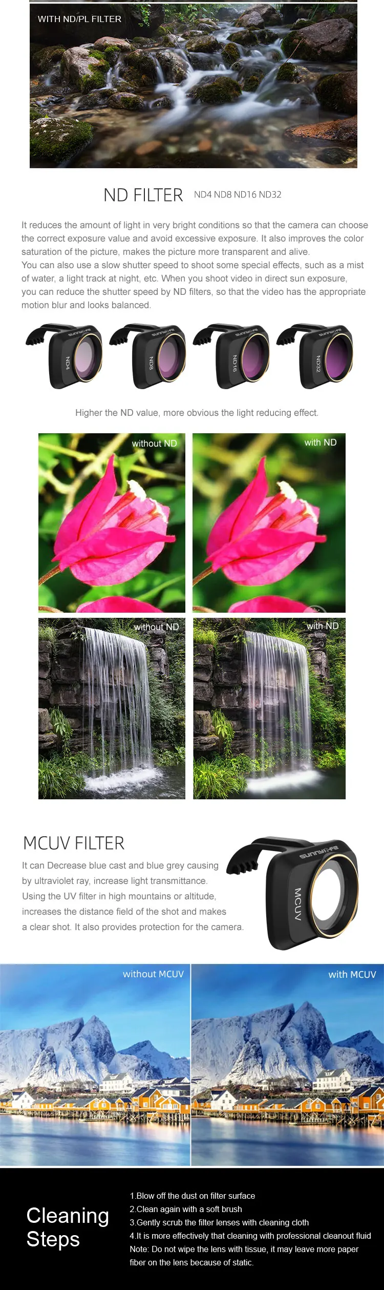 Фильтр объектива камеры Sunnylife MCUV ND4 ND8 ND16 ND32 CPL ND/PL фильтры для DJI Mavic Mini Drone аксессуары