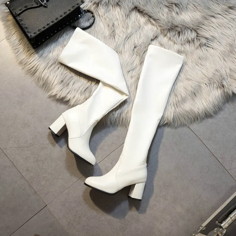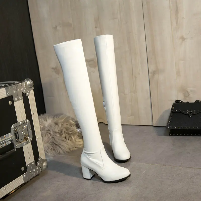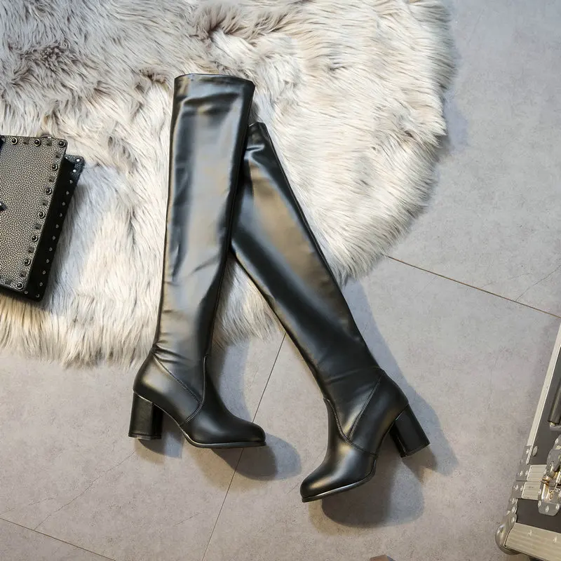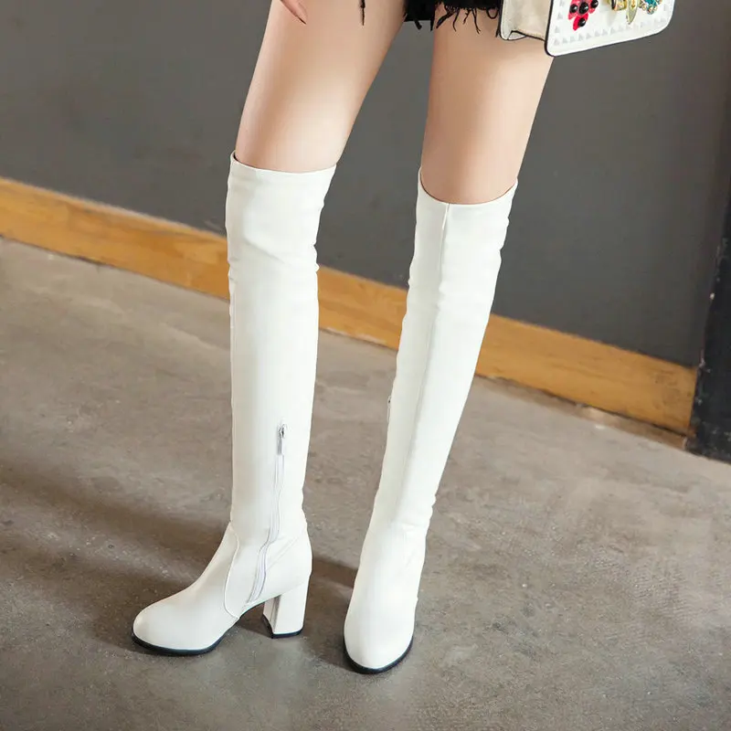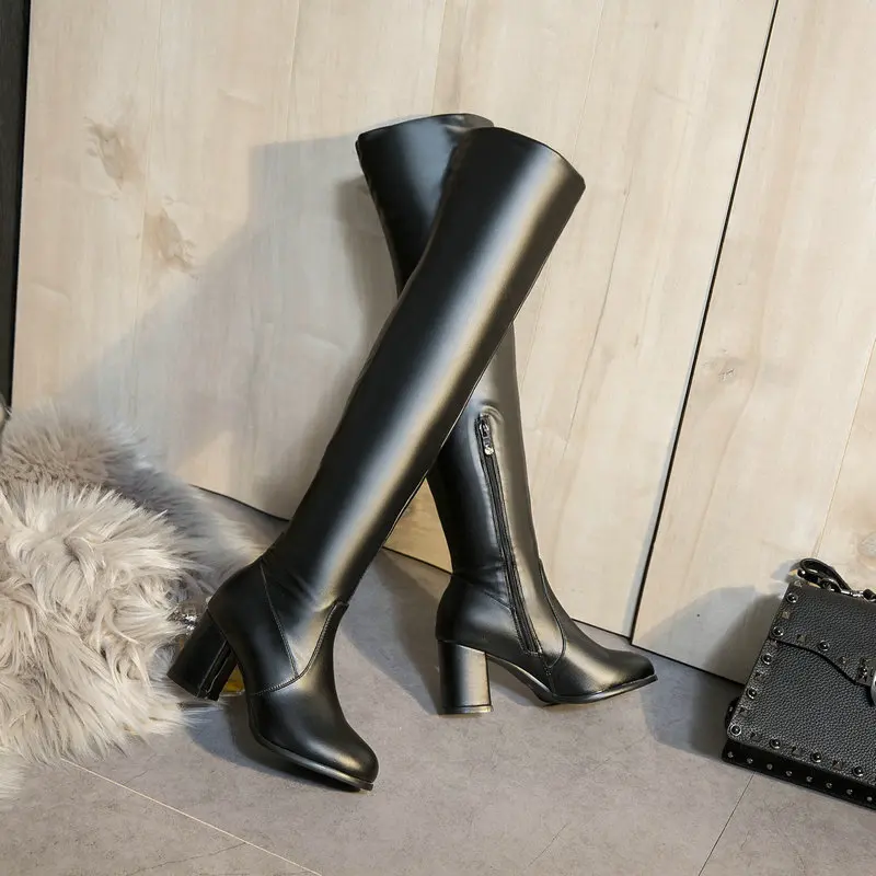 Женские высокие сапоги на толстом каблуке, сапоги на молнии, большой размер 34-43, для осени и зимы, 2020