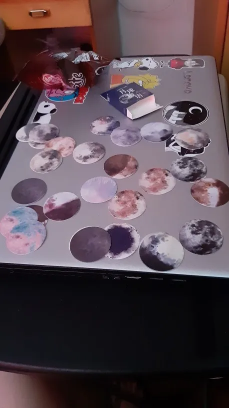 Я очень доволен этим, я купил два набора наклеек на Луну, один из магазина и один из другого. Они действительно хорошего размера и поставляются с кучей наклеек. Довольно толстые, но имеют бумажное дно, поэтому их нельзя использовать для вещей, которые промокают. Прибыло немного меньше месяца после того, как я их заказал.