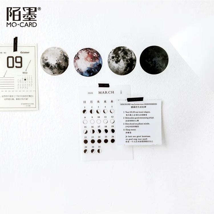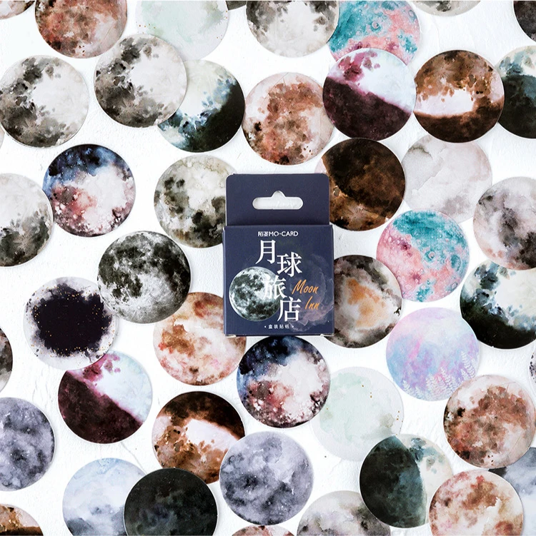 Канцелярские наклейки в виде Луны, 46 шт.упак., бумажные стикеры, принадлежности для школы и офиса