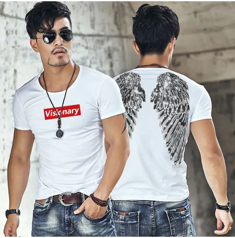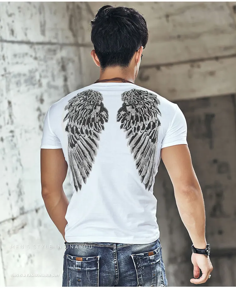 2020 Summer New Arrival Men shining Wing T Shirt Novelty angle Diamonds Tshirt Man's Casual Tees Short Sleeve Hip Hop Streetwear