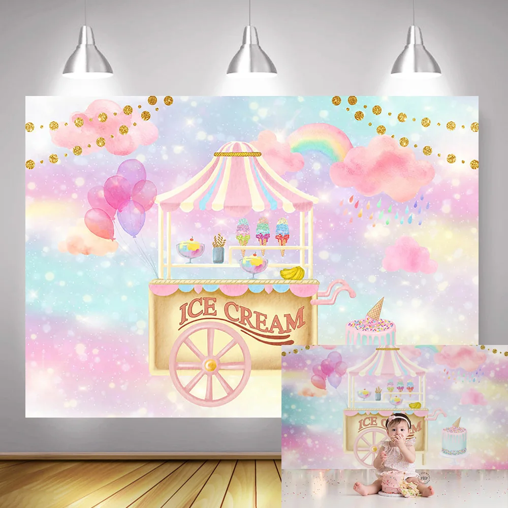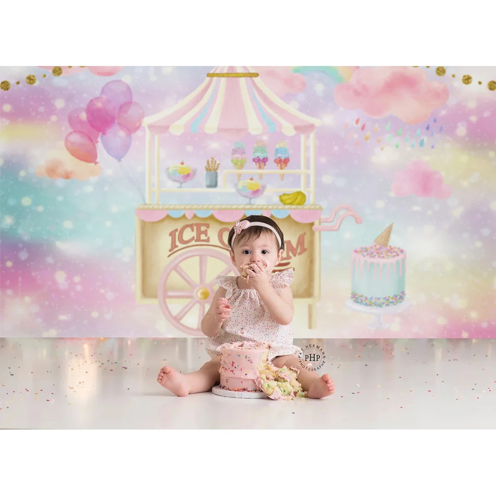 Мороженое Новорожденный ребенок день рождения торт фон в виде изображения стола для фотографии единорог Радуга Небо дети портрет фото фон