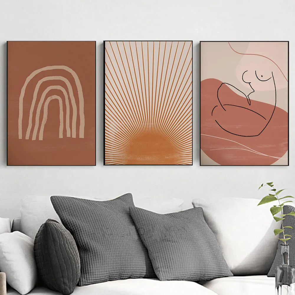 Модная абстрактная Геометрическая Картина на холсте бежевого, корич...