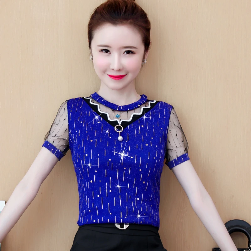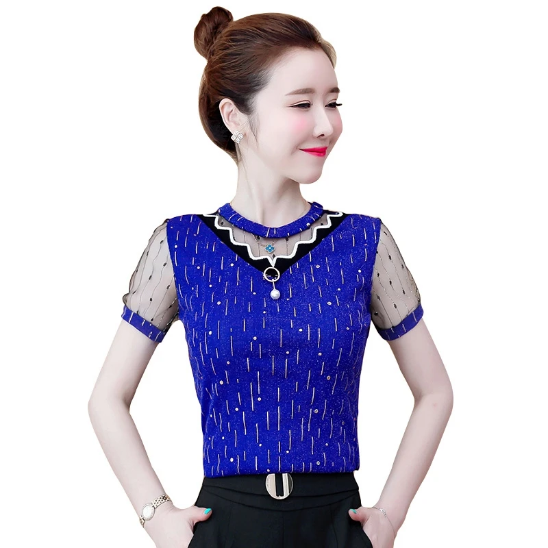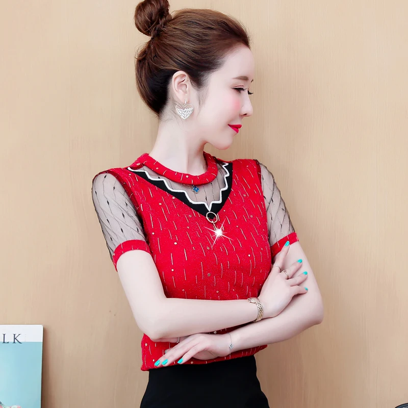 COIGARSAM, модная блузка с принтом, женская новая летняя кружевная блузка с коротким рукавом, Женские топы и блузки, красный, зеленый, синий, черный, 855