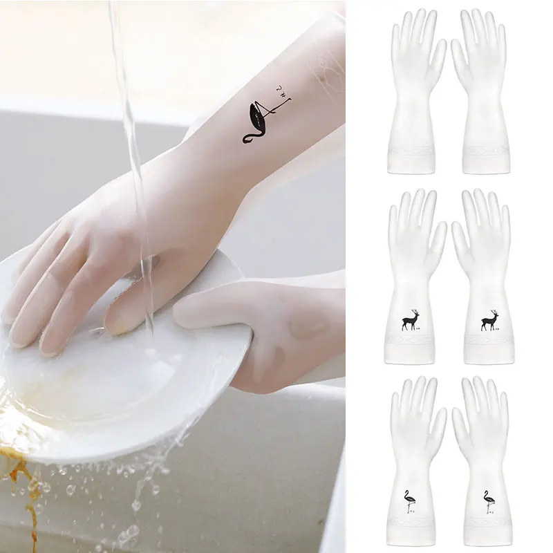 Прозрачные белые перчатки из ПВХ для мытья посуды, Нескользящие тол...