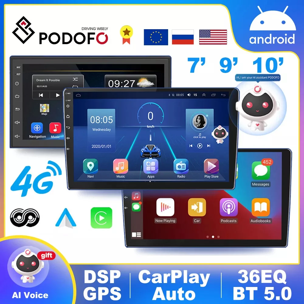 Podofo AI Android автомобильный мультимедийный плеер 4G сплит-экран автомобильное радио GPS аудио стерео 2 Din Авторадио плеер для Suzuki Buick Volkswagen ISO Hyundai Kia Honda Toyota Nissan mitisish Ford Outlande