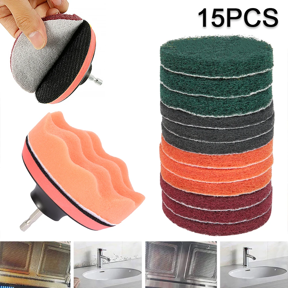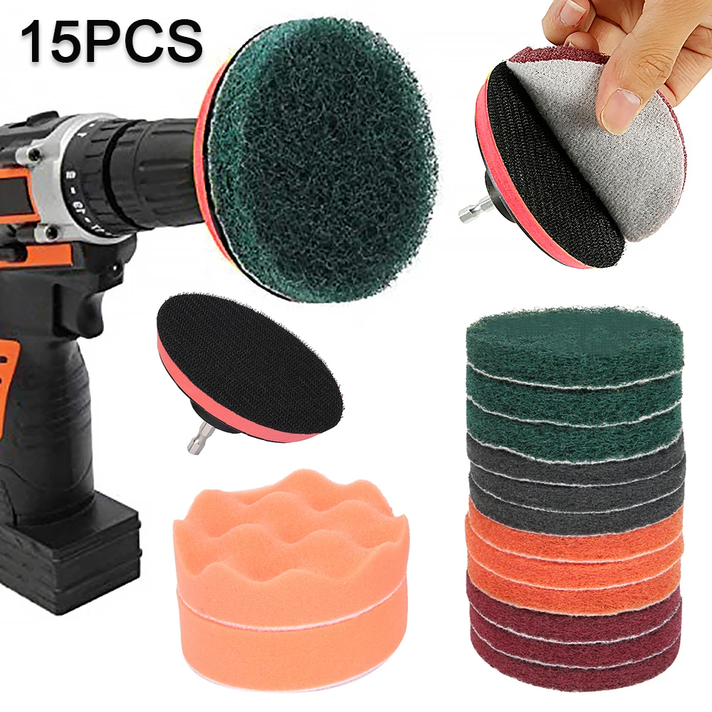 Полировальный лист, 16 шт., самоклеящийся полировальный лист, многоцелевой набор для очистки скруббера, электрическая дрель, щетка