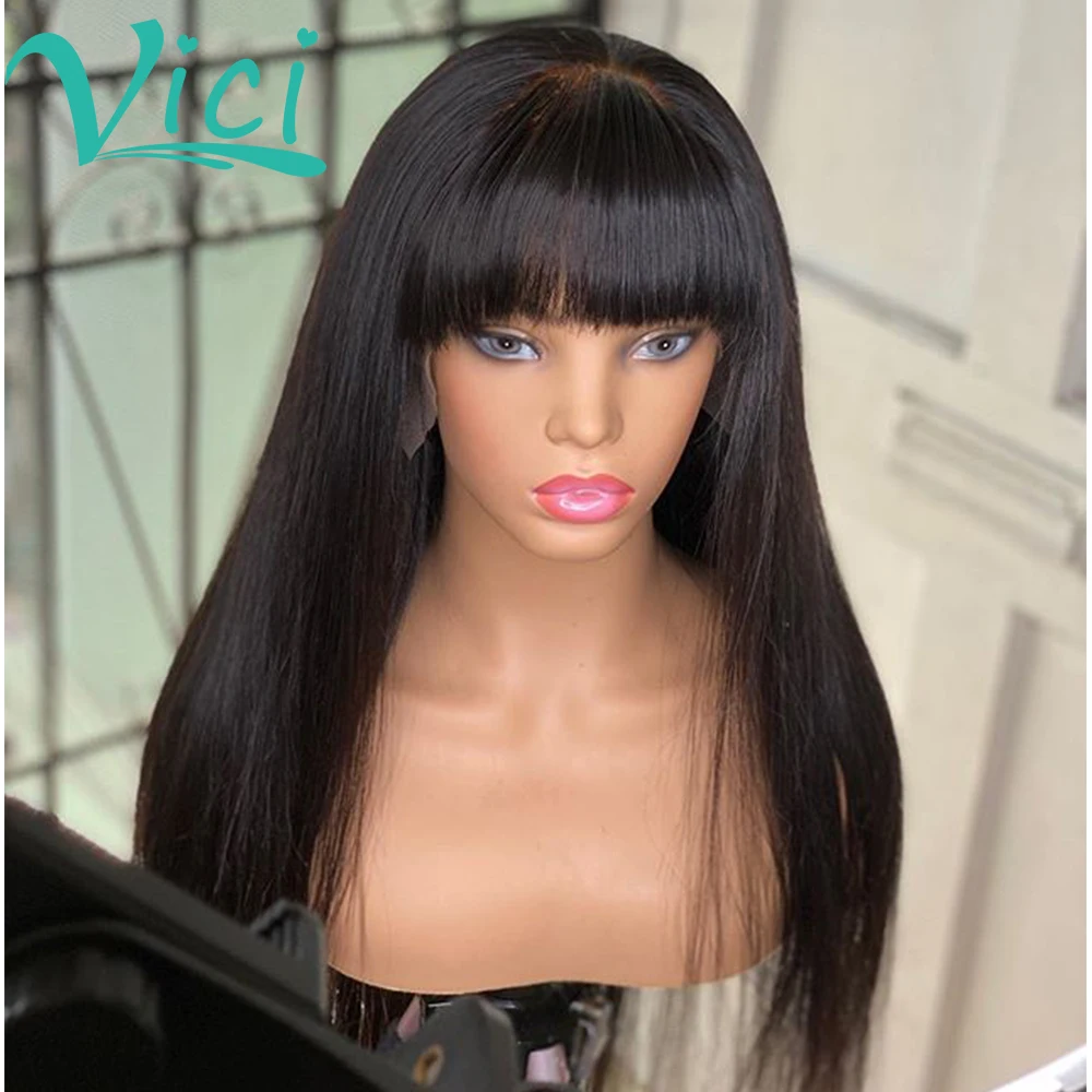 Парик Из прямых волос с челкой, парик на шнуровке спереди 13x4, предварительно выщипанные Детские волосы, фронтальные парики, бразильские парики из человеческих волос для женщин