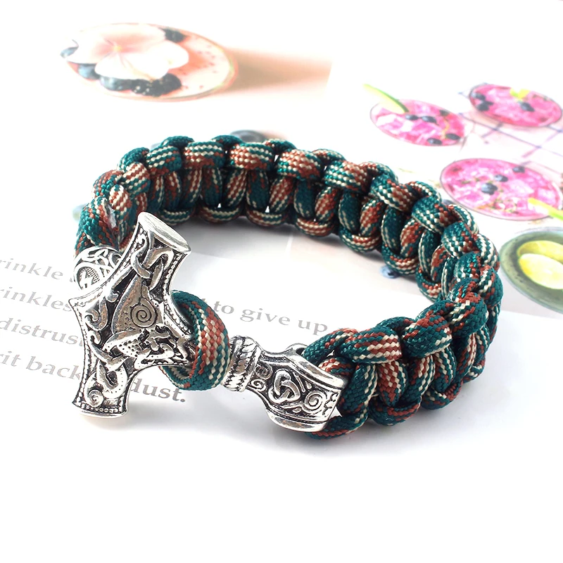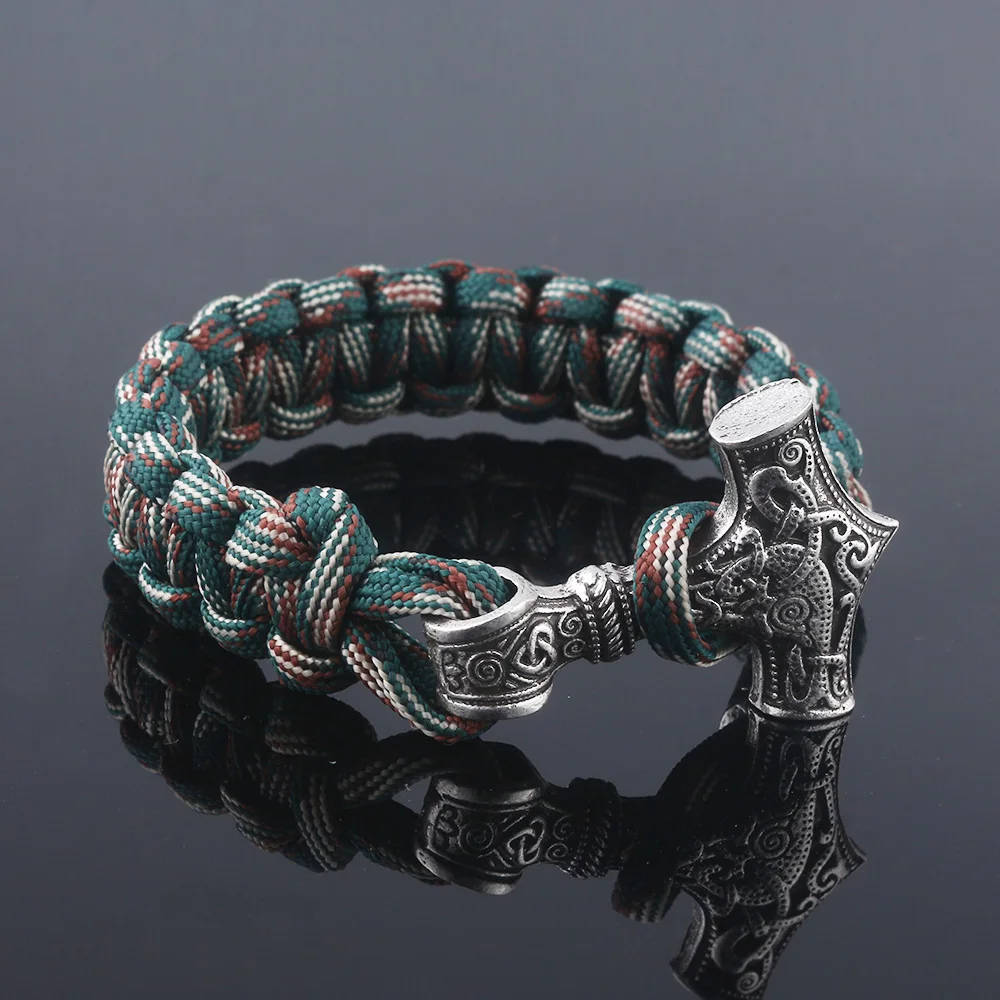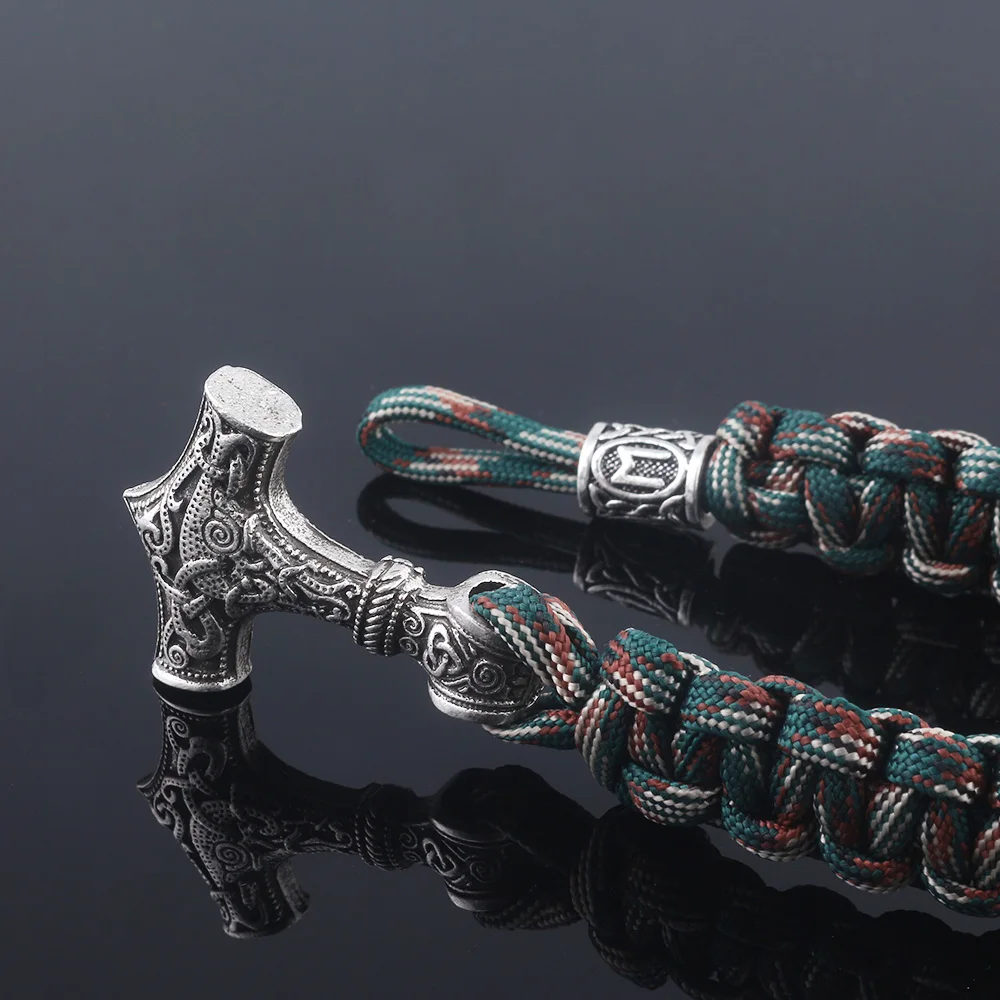 Браслет из паракорда ручной работы, норвежский викинг, Тора, подвеска в виде молотка, скандинавские рунические браслеты из бисера, браслеты для мужчин, ювелирные изделия