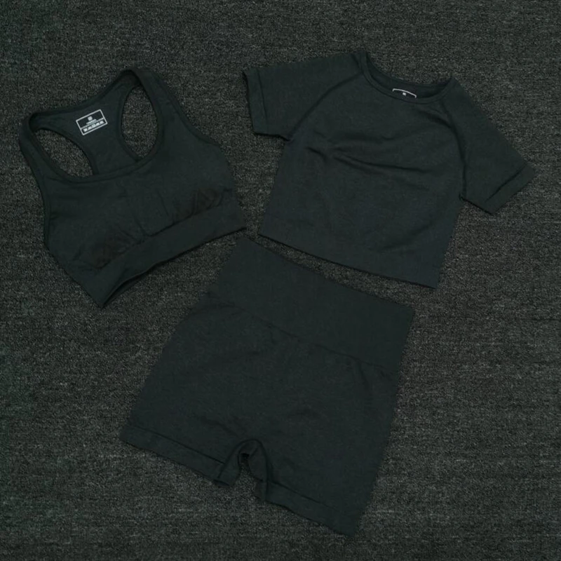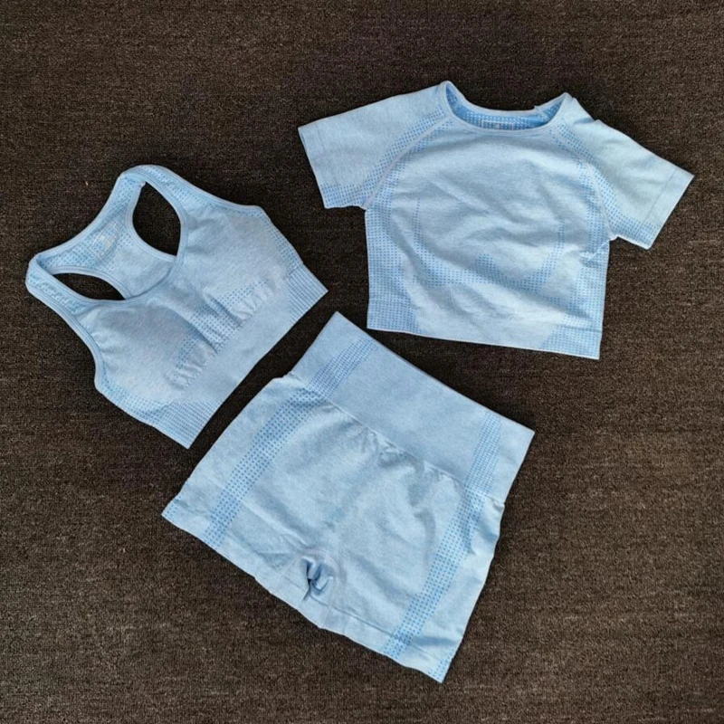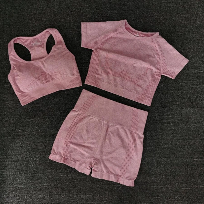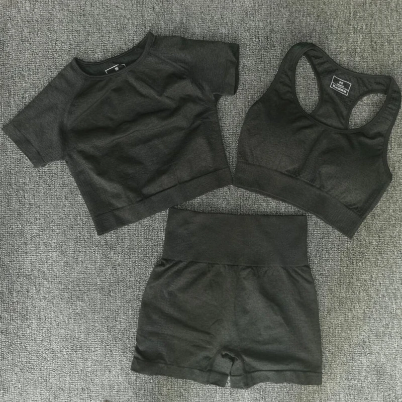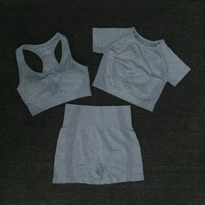 Женский летний бесшовный комплект для йоги, спортивные костюмы для фитнеса, одежда для тренажерного зала, футболка для йоги, шорты с высокой талией, бюстгальтер, штаны для тренировок, 3 шт.
