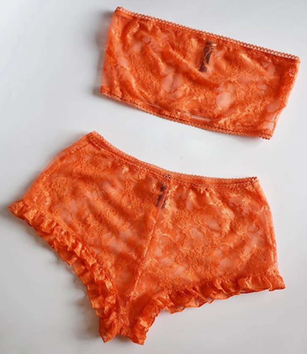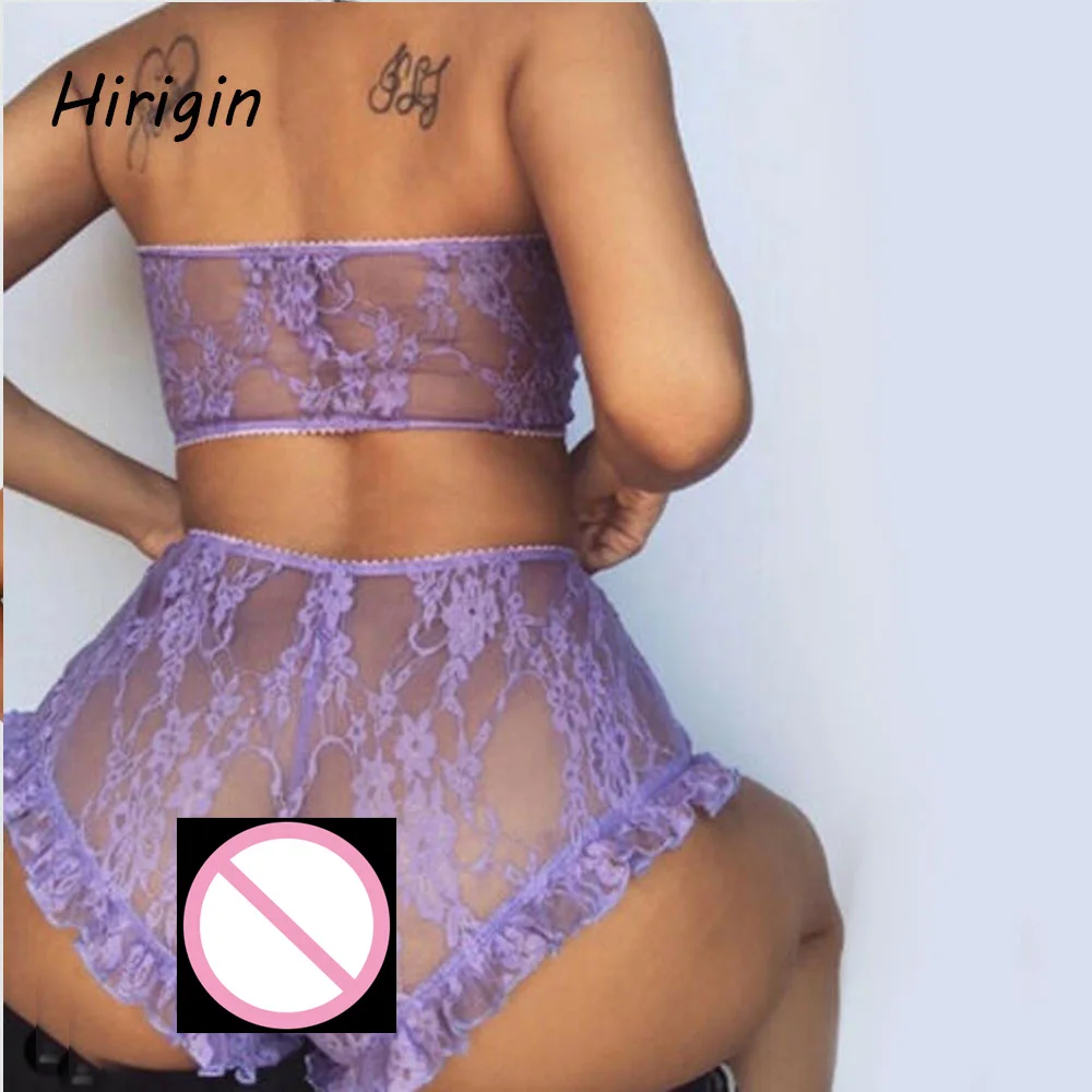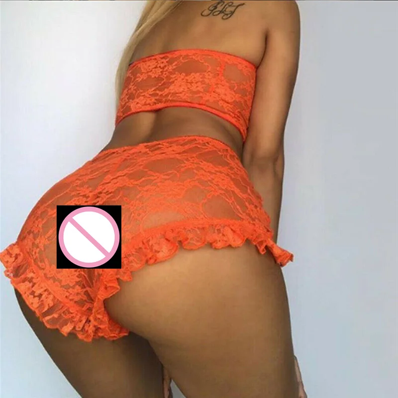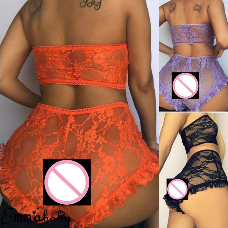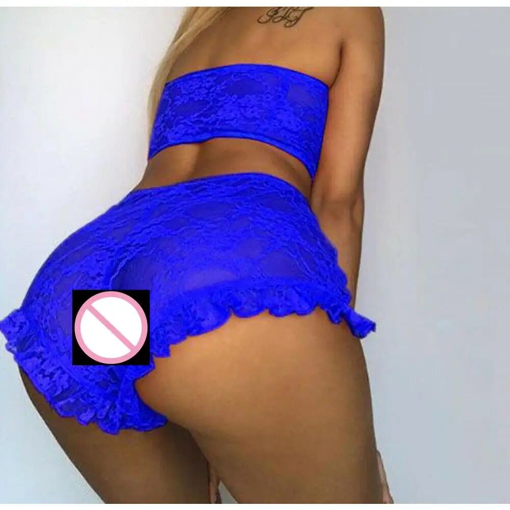 Женское сексуальное кружевное белье, комплект нижнего белья, Однотонная ночная рубашка, одежда для сна, комбинация из двух предметов, топ-трусики + трусики