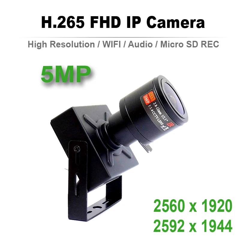 IP-камера 5 Мп с Wi-Fi (2560*1920/ 2560*1440) Аудиозапись Объектив: 2,8 мм-12 мм ручной Поддерживает как Wi-Fi, так и проводной режим Поддержка записи Micro SD (максимальная поддержка 128 ГБ, карта Micro SD по умолчанию в комплект не входит) Поддерживает ONVIF, может работать со вечерние видеорегистратором. Поддержка мобильного видеонаблюдения (iOS,android) Поддержка обнаружения движения и оповещения по электронной почте Встроенный микрофон Удаленное видео в реальном времени, звук в реальном времени Поддержка записи видео и звука