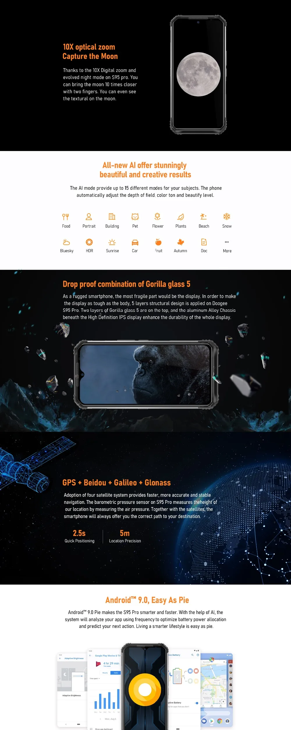 DOOGEE S95 Pro смартфон с восьмиядерным процессором MTK Helio P90, ОЗУ 8 Гб, ПЗУ 128256 ГБ, 48 МП