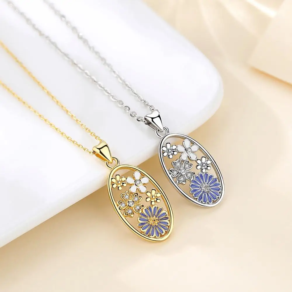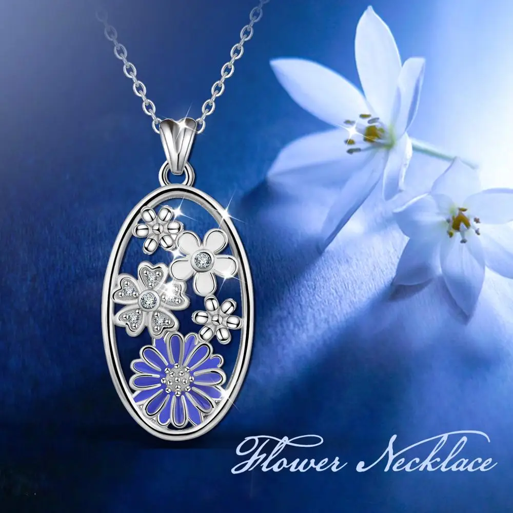 EUDORA уникальная немецкая Подвеска из серебра с синим васильком, с кристаллом и цепочкой, ювелирные украшения для подарка на День святого Валентина