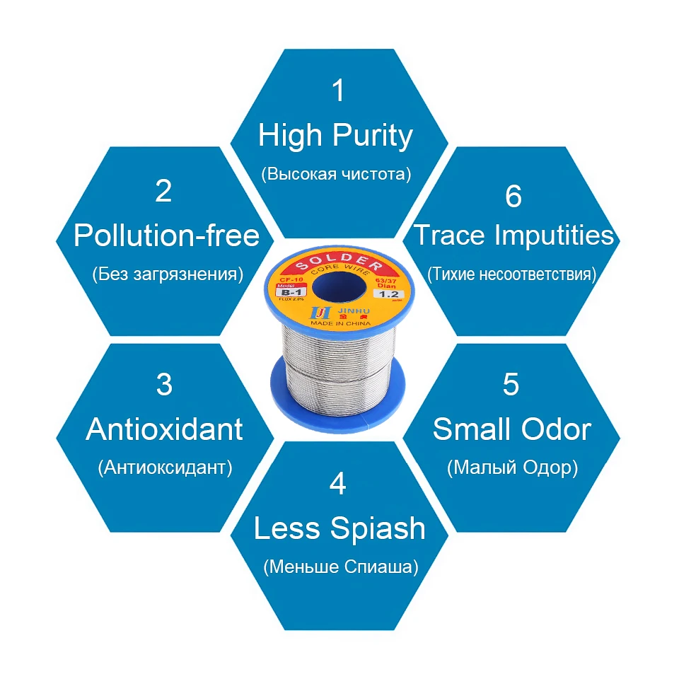 Припой с проводом 6337 0,60,81,01,21,5 мм 300 г без чистой канифоли с 2.0% флюсом и низкой температурой плавления для электрического паяльника