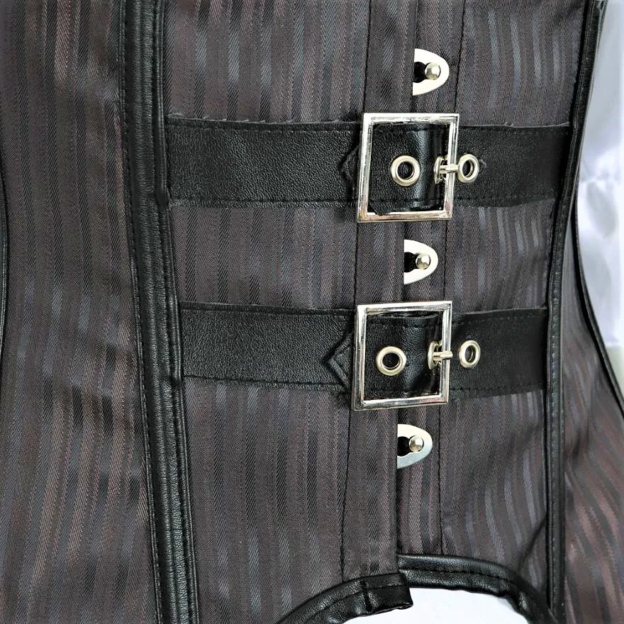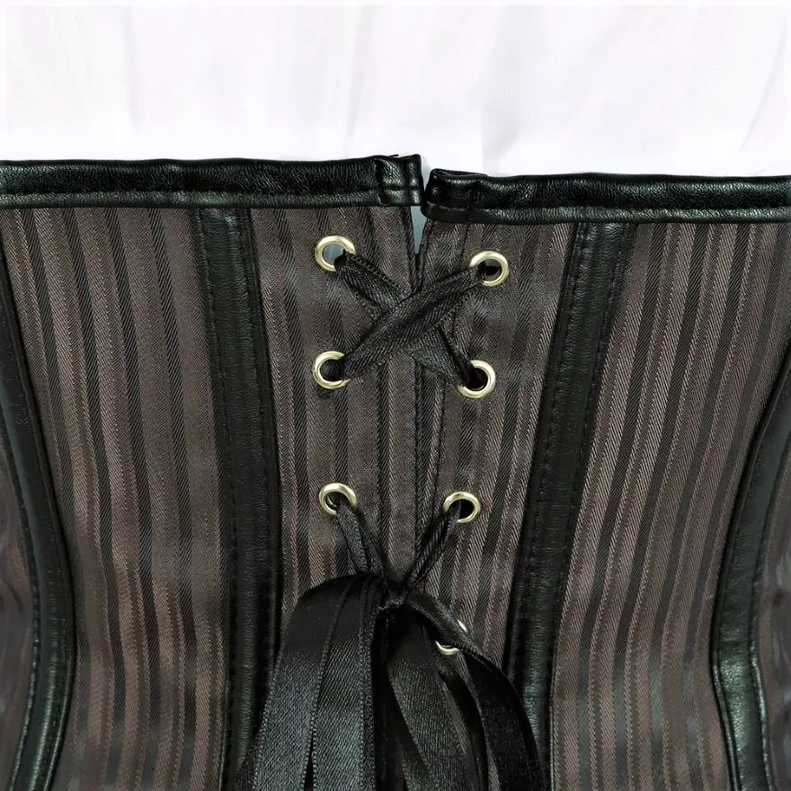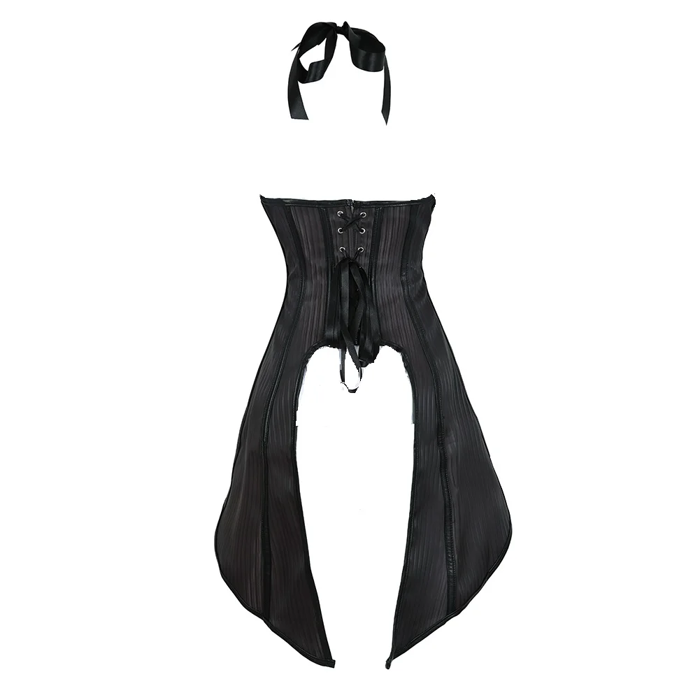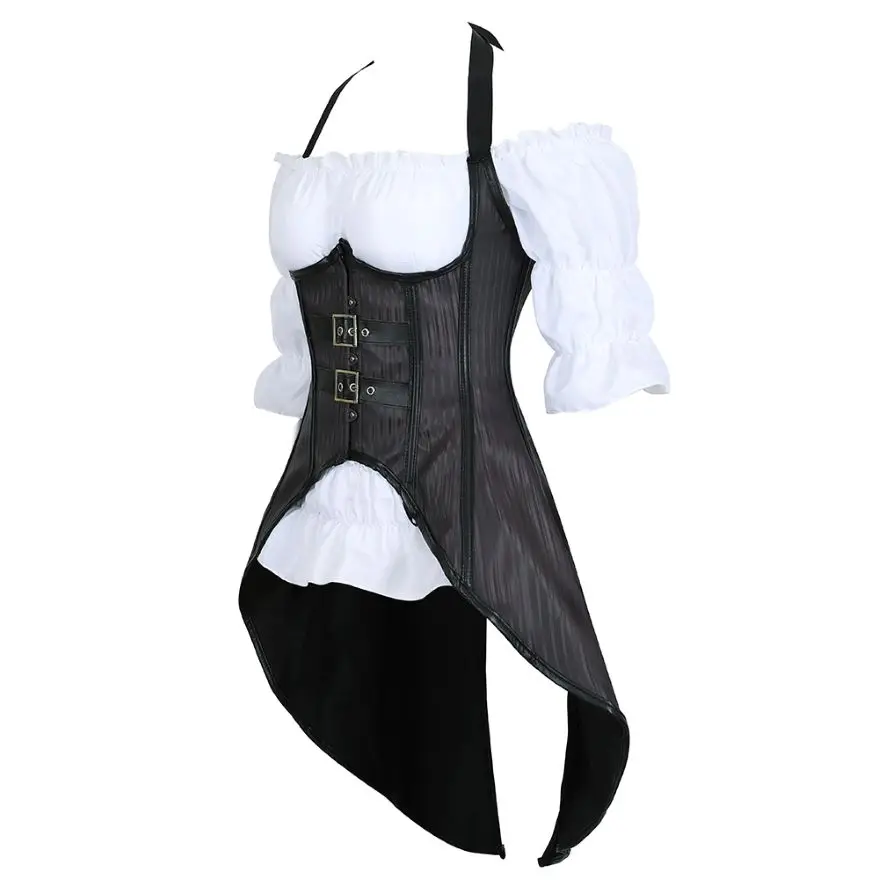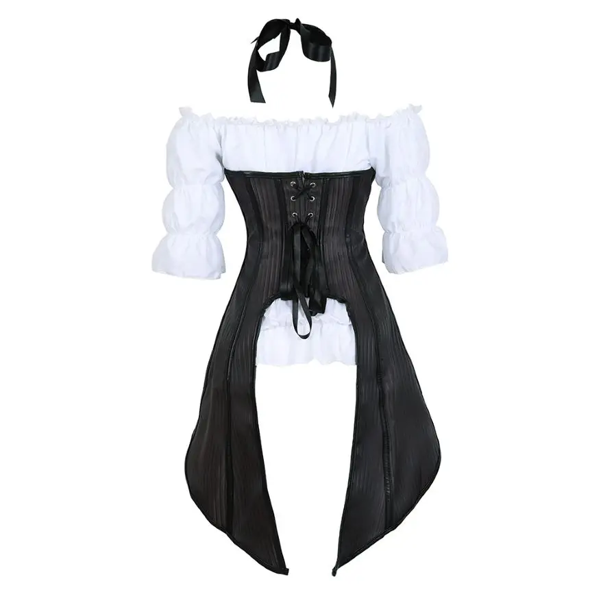 Корсет в стиле стимпанк, полосатый, с длинными бретельками, бюстье, жилет, топ с белой готической блузкой, костюм для бурлеска, костюм, корсет
